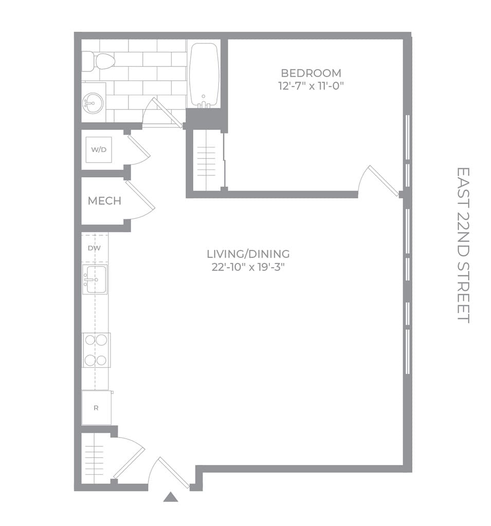 1 Dormitorio, 1 Baño, 689 pies²Disponible AhoraGalería del Modelo