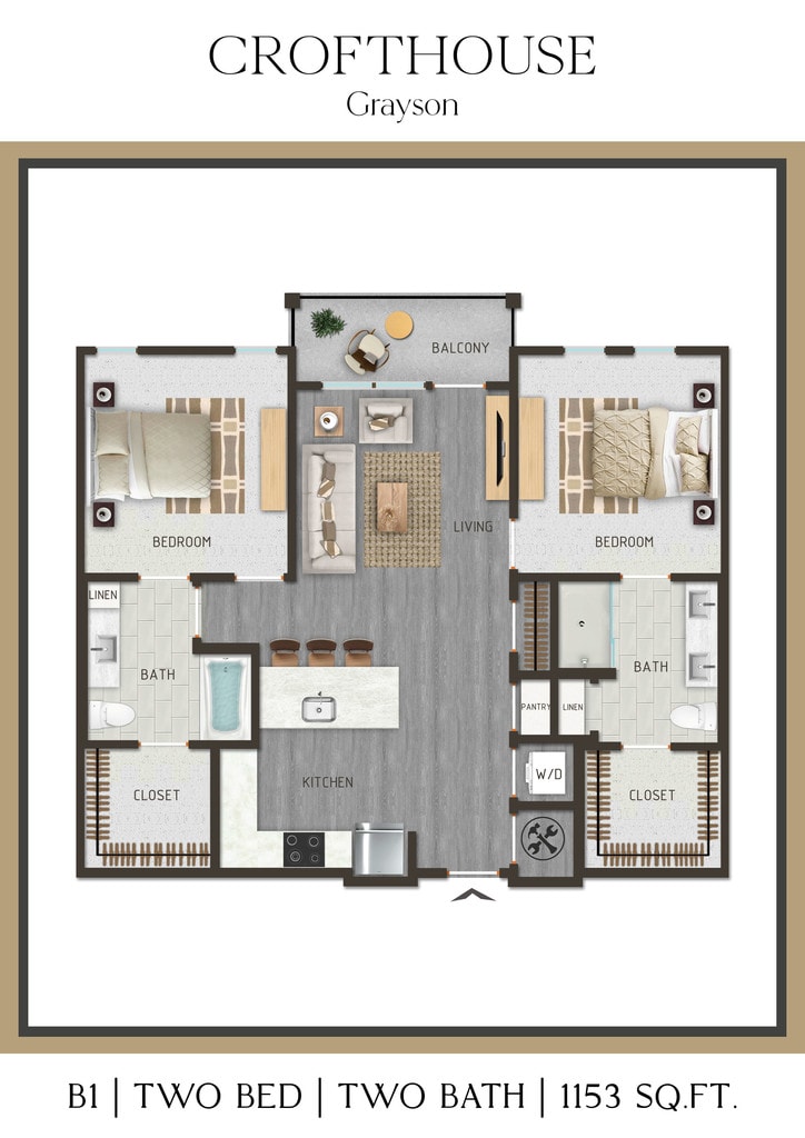 2 Dormitorios, 2 Baños, 1153 pies²Galería del Modelo