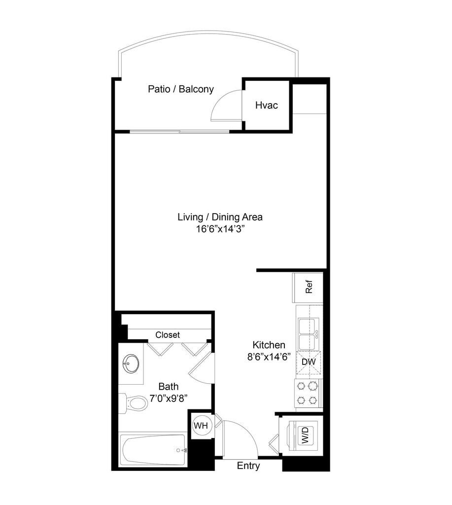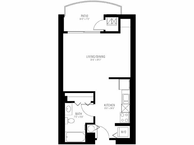 Estudio, 1 Baño, 507 pies²Disponible AhoraGalería del Modelo