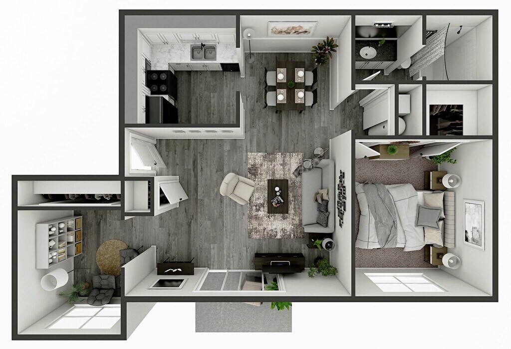 1 Dormitorio, 1 Baño, 850 pies²Disponible AhoraEl más grandeEsta opción tiene las unidades más grandes para este modeloGalería del Modelo