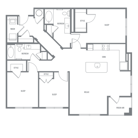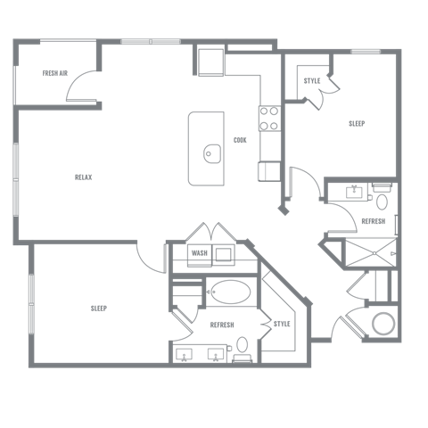 Modelo de apartamento: Unit A1Desde $1,4571 Dormitorio, 1 Baño, 759 sq ftDisponible Ahora![]()