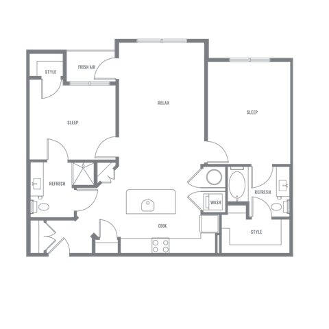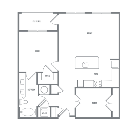 1 Dormitorio, 1 Baño, 759 pies²Disponible AhoraGalería del Modelo