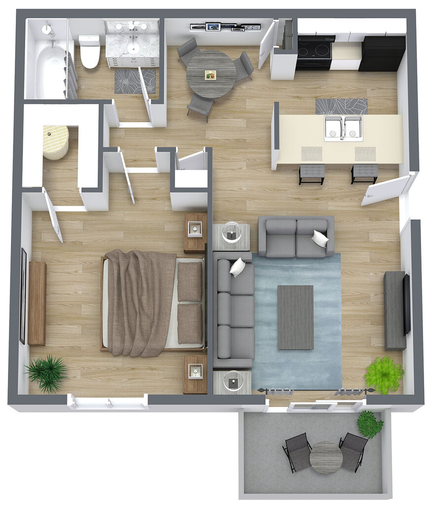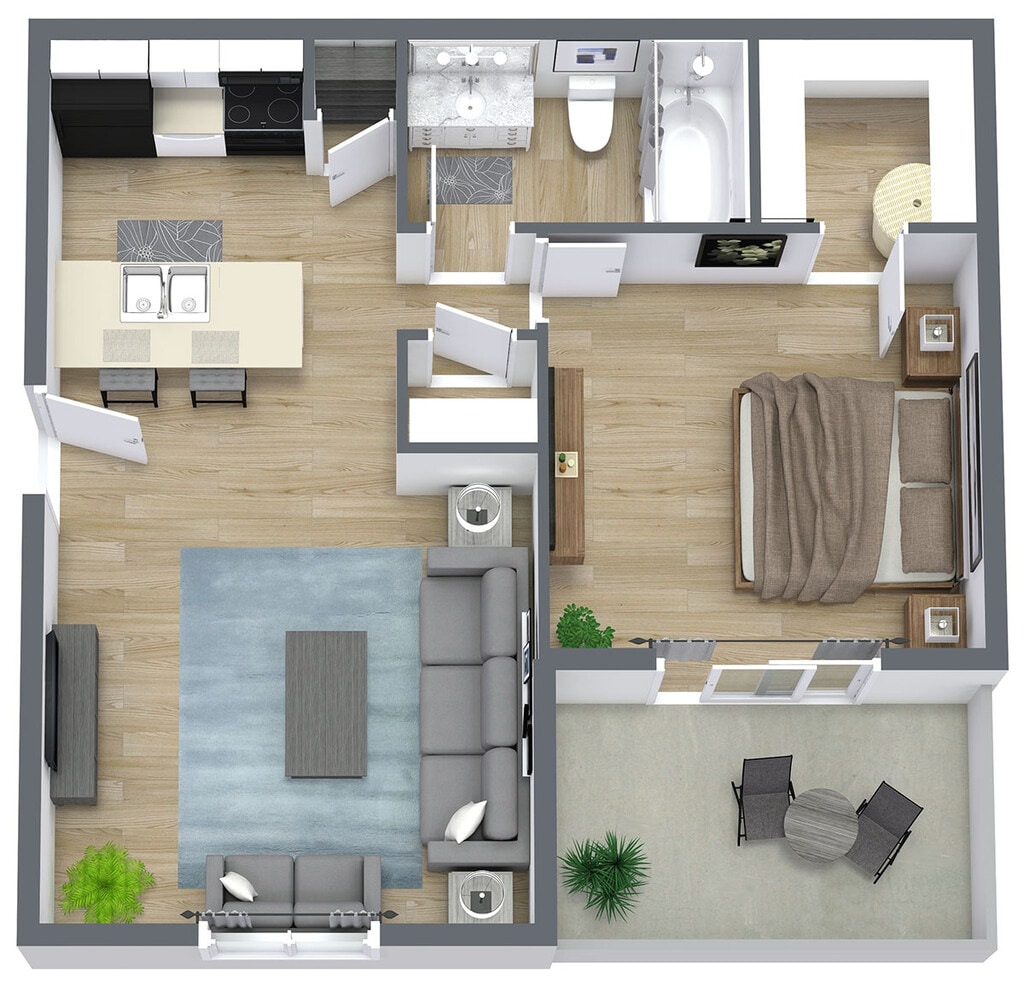 1 Dormitorio, 1 Baño, 568 pies²El más grandeEsta opción tiene las unidades más grandes para este modeloGalería del Modelo