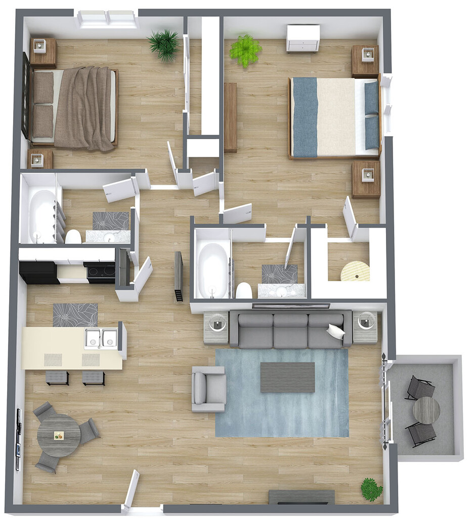 Modelo de apartamento: B2Desde $1,2352 Dormitorios, 2 Baños, 854 sq ftNo Disponible![]()