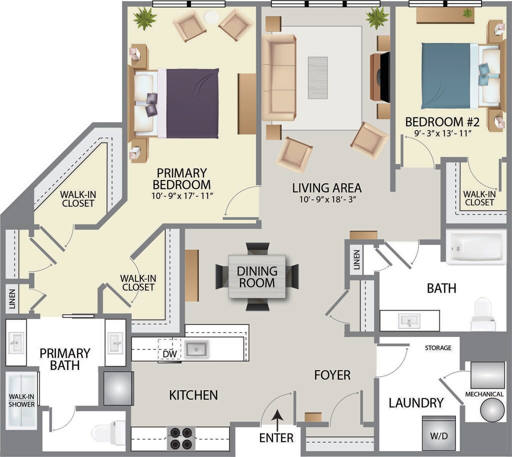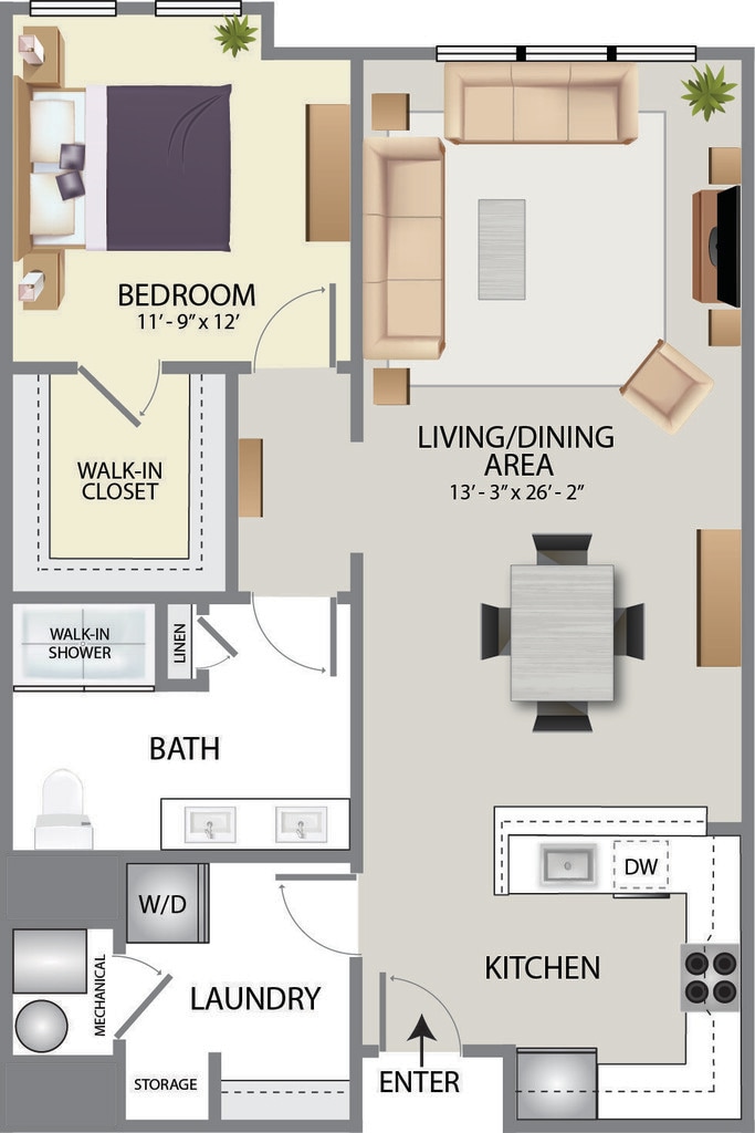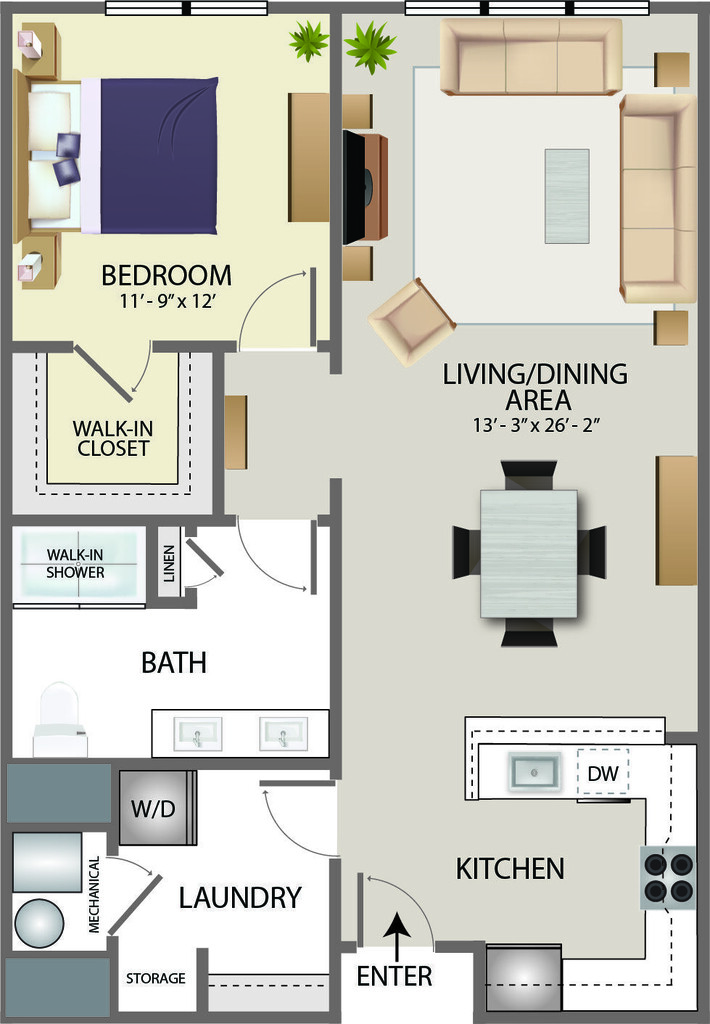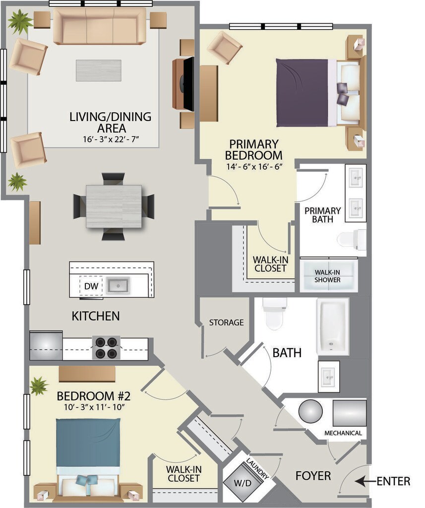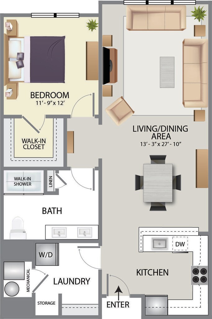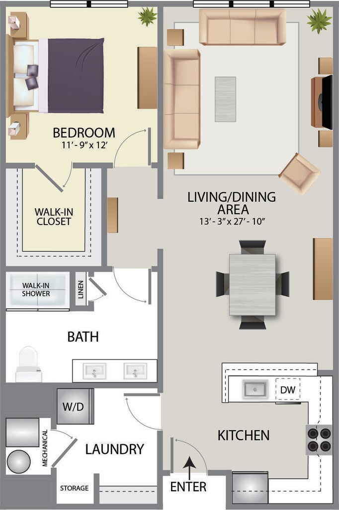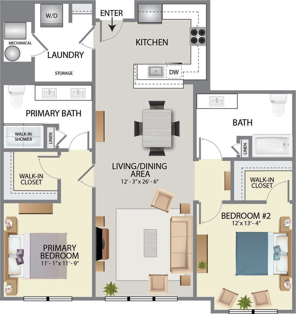 Modelo de apartamento: B3Llame para Precios1 Dormitorio, 1 Baño, 962 sq ftNo Disponible![]()
