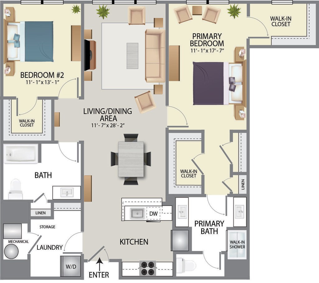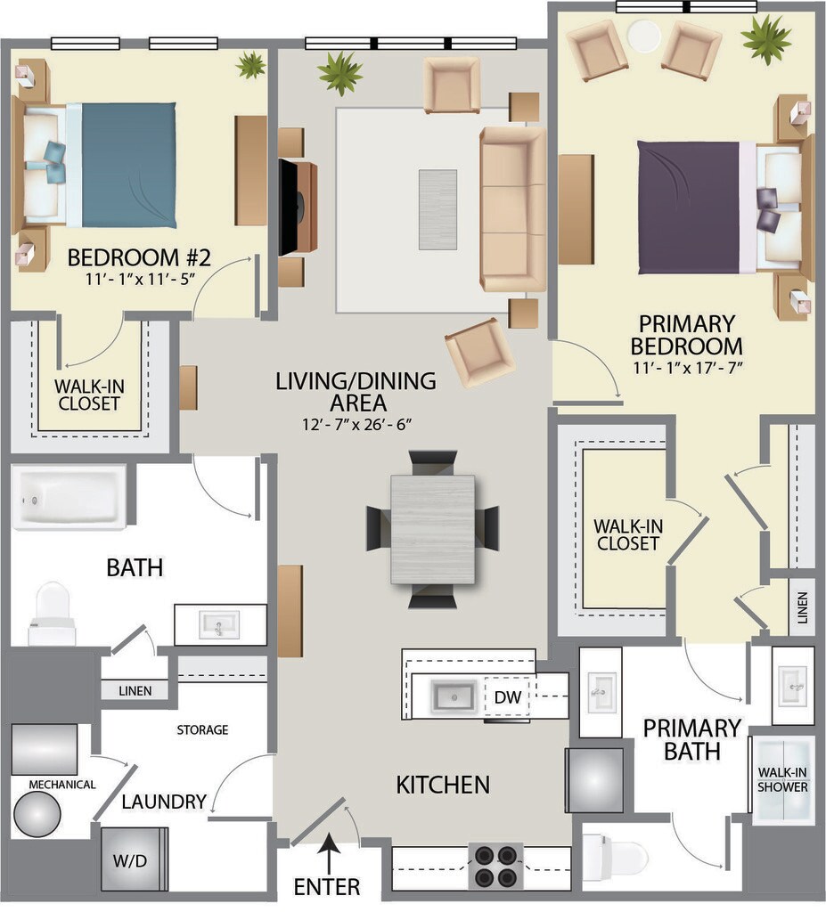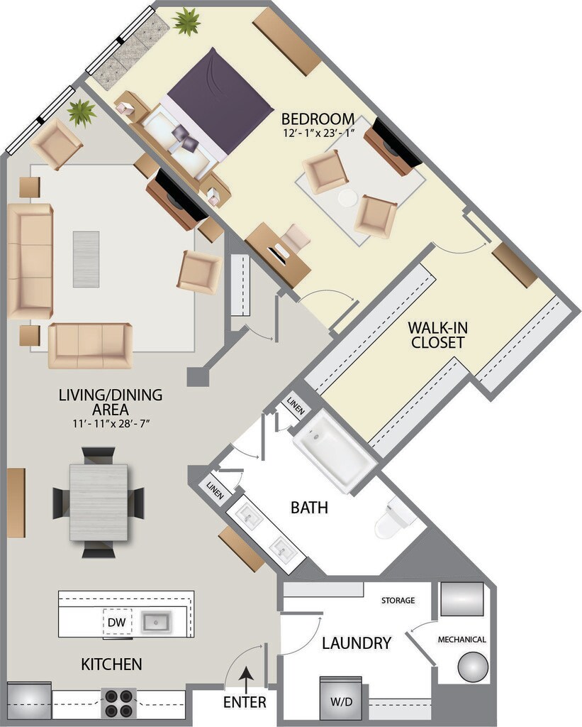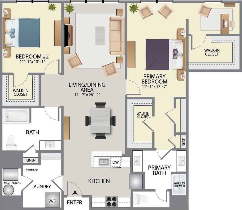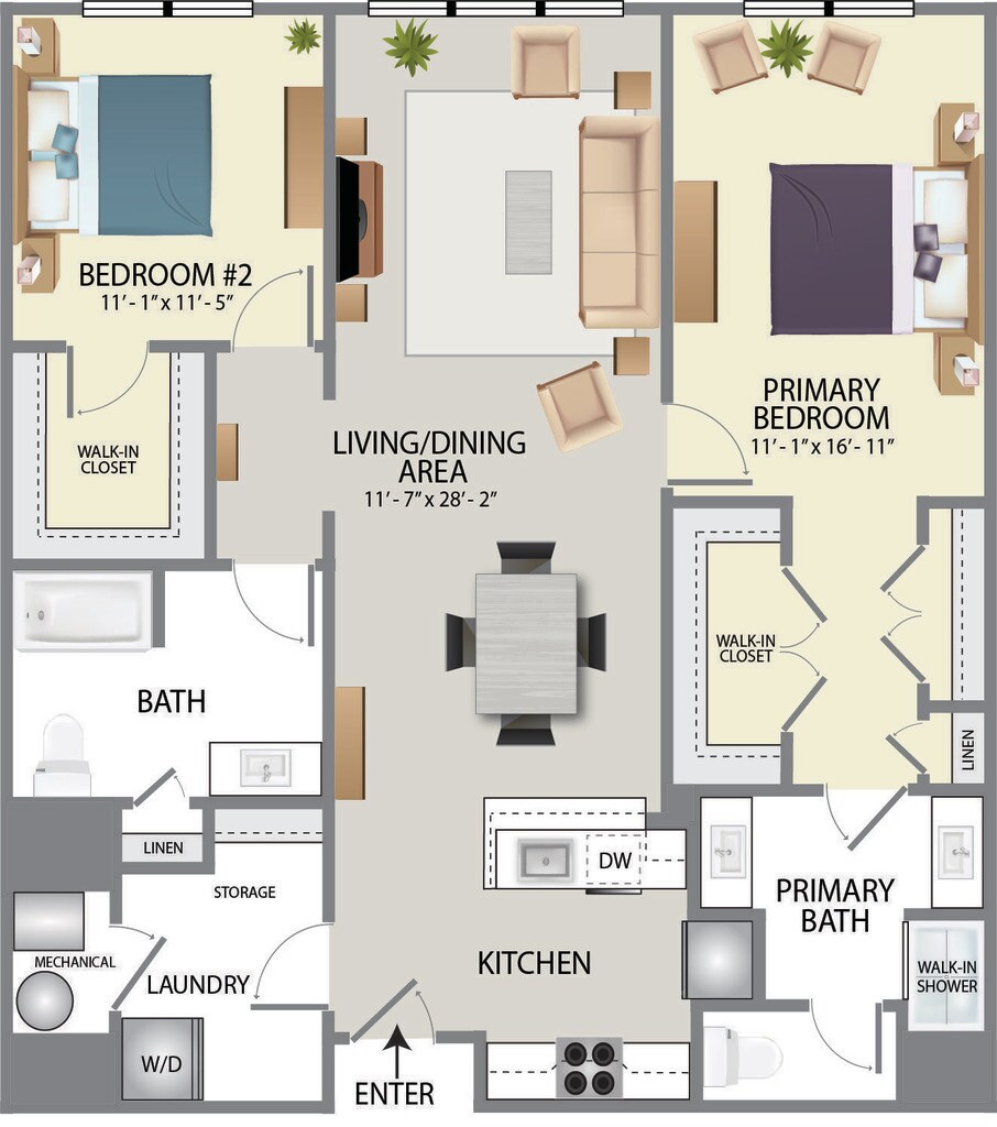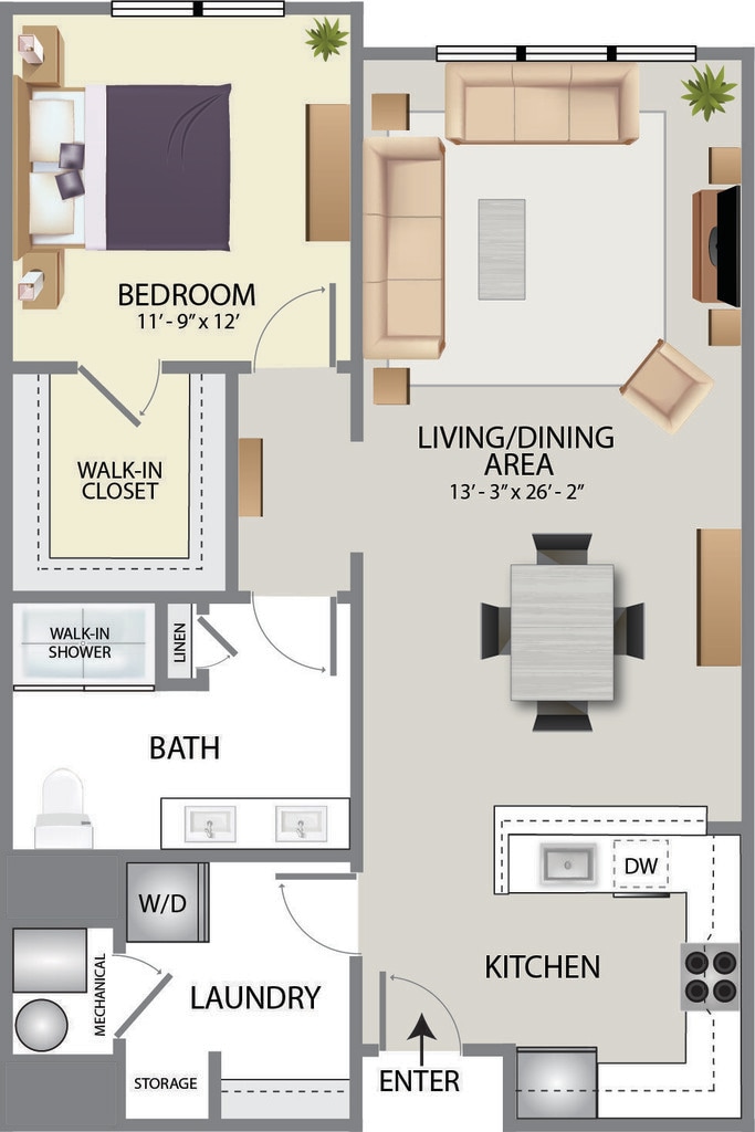 Modelo de apartamento: B3Llame para Precios1 Dormitorio, 1 Baño, 962 sq ftNo Disponible![]()