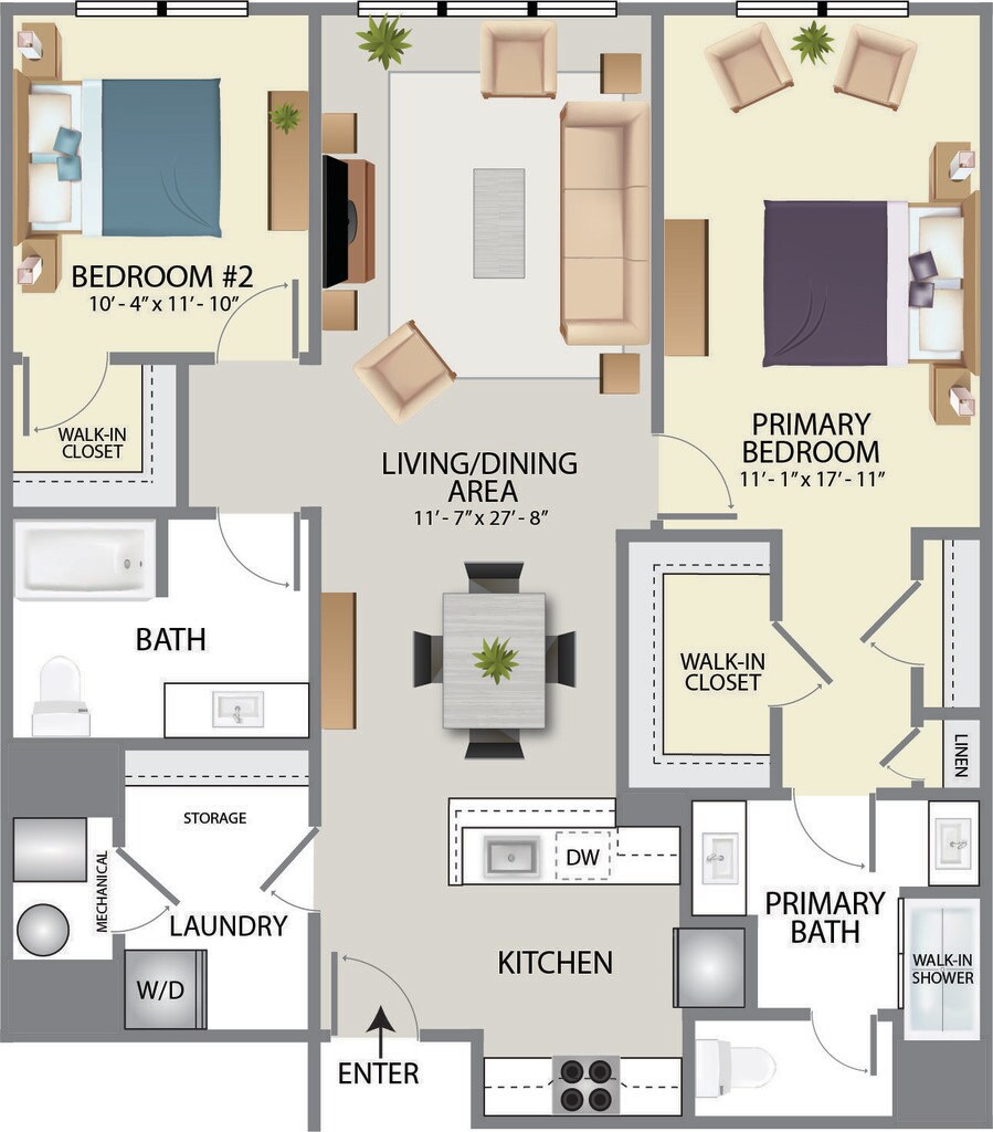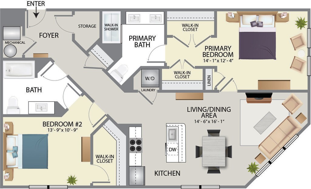 Modelo de apartamento: B8Llame para Precios1 Dormitorio, 1 Baño, 883 sq ftNo Disponible![]()