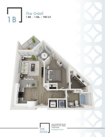 The Odell - Plano 8 Unidad de apartamento: 174Modelo de apartamento: The Odell$1,7301 Dormitorio, 1 Baño, 745 sq ftDisponible AhoraThe Knoll