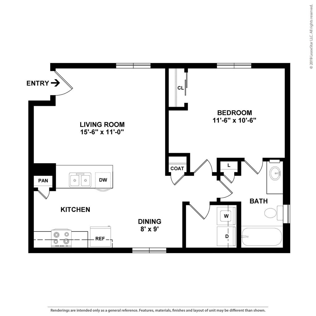 1 Dormitorio, 1 Baño, 643 pies²Galería del Modelo