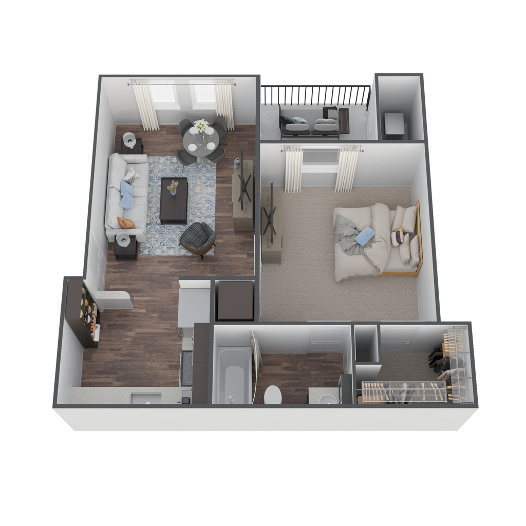 1 Dormitorio, 1 Baño, 617-629 pies²Disponible AhoraGalería del Modelo