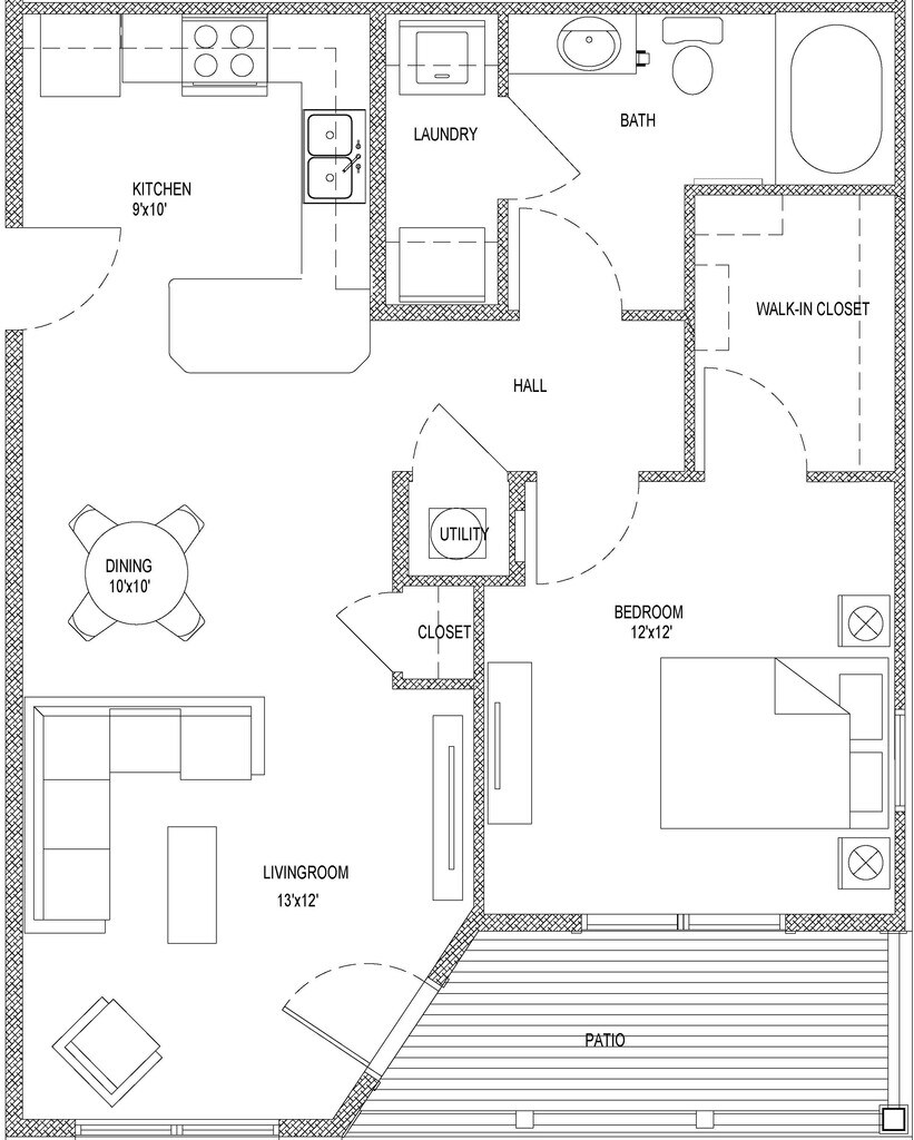 1 Dormitorio, 1 Baño, 791 pies²Disponible AhoraGalería del Modelo
