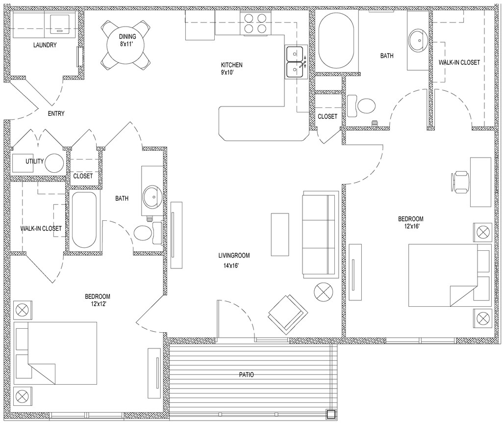 2 Dormitorios, 2 Baños, 1168 pies²Disponible AhoraGalería del Modelo