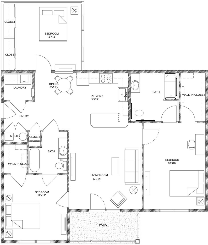 3 Dormitorios, 2 Baños, 1383 pies²Galería del Modelo