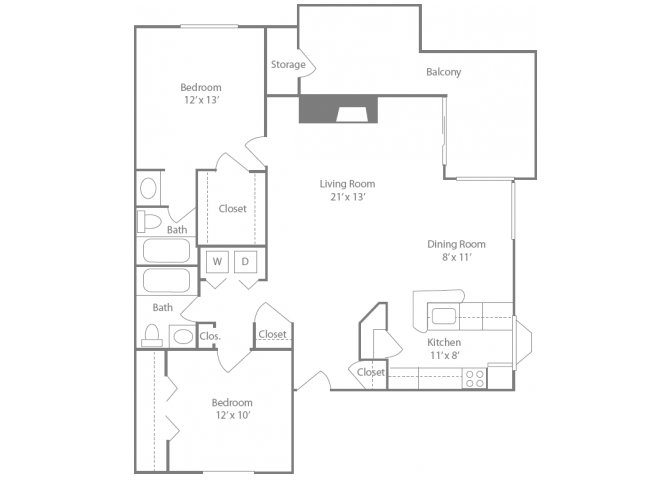 Modelo de apartamento: Sandown2 Dormitorios, 2 Baños, 928 sq ftDisponible Ahora![]()