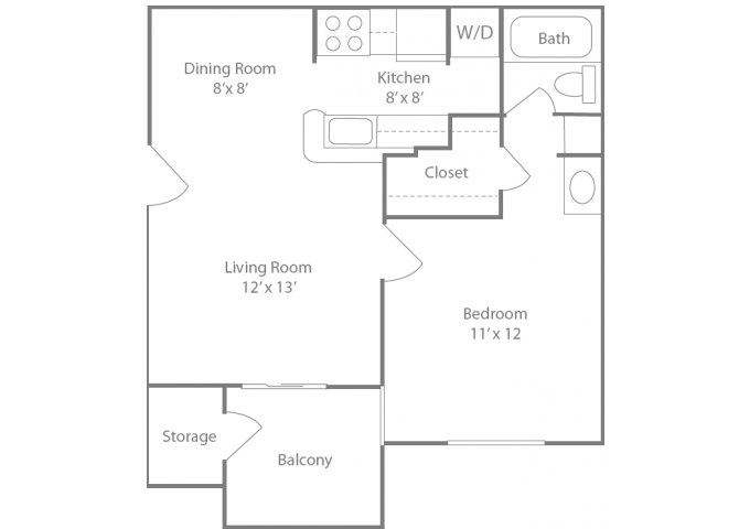 Modelo de apartamento: Ascot1 Dormitorio, 1 Baño, 564 sq ftDisponible Ahora![]()