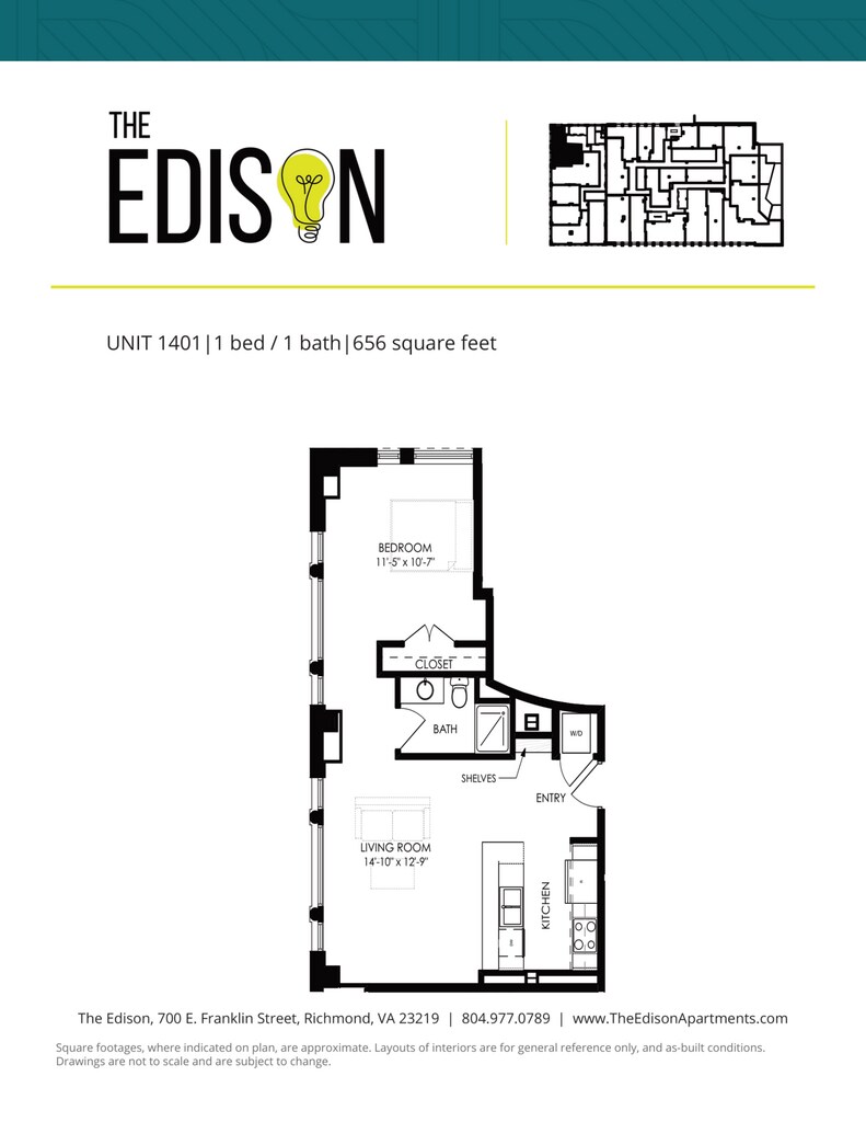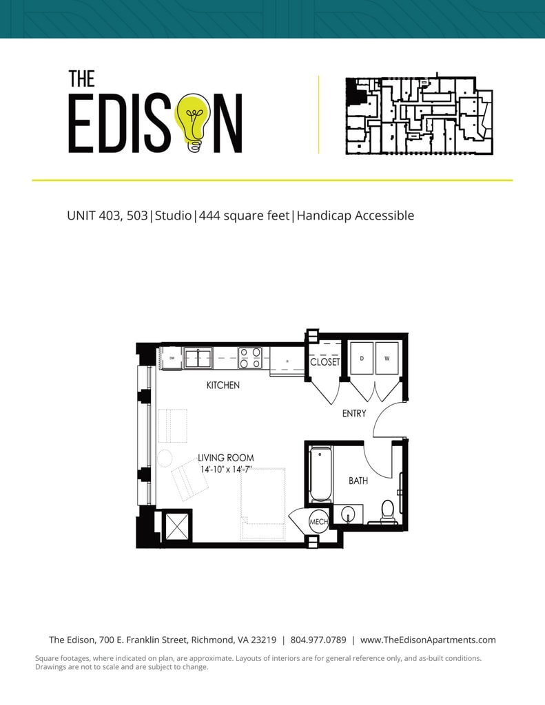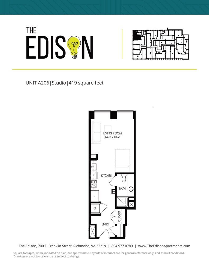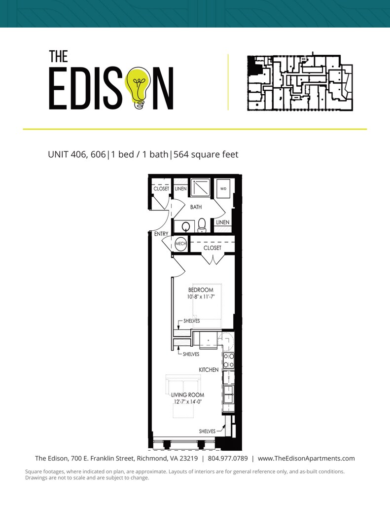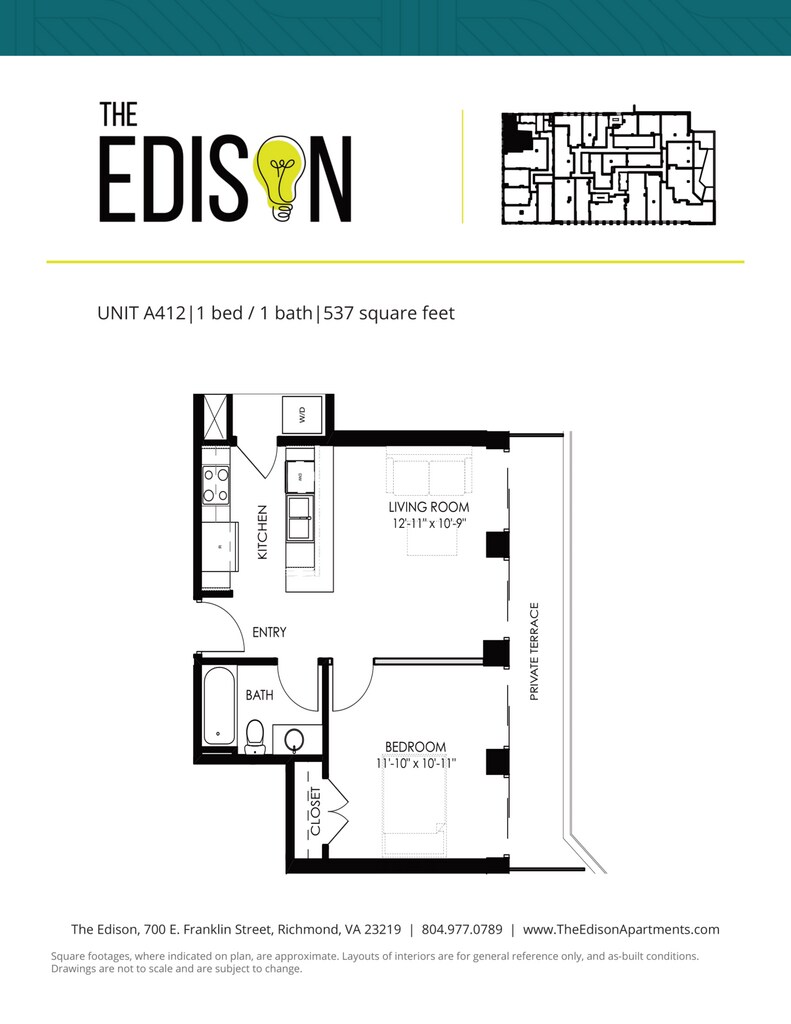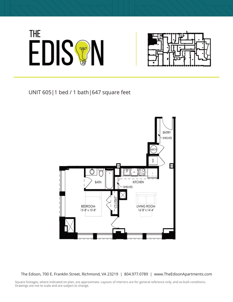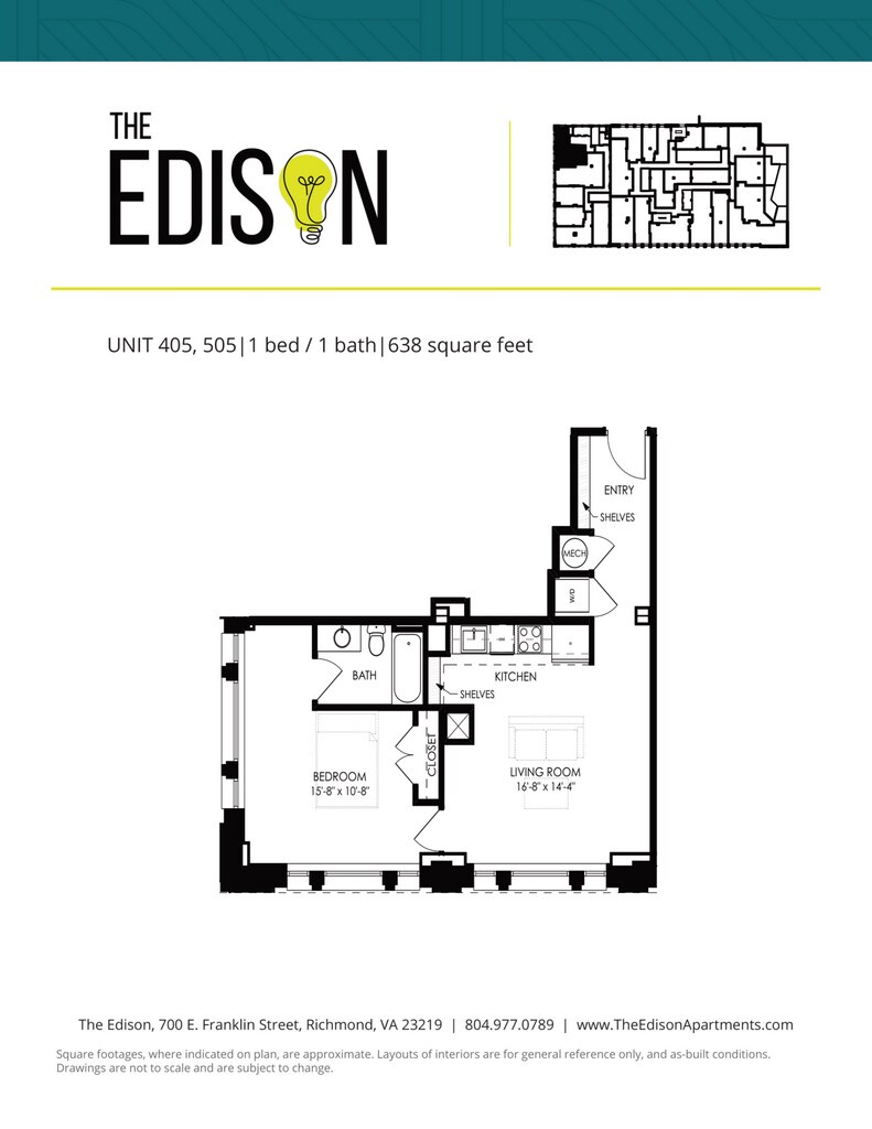 Bienvenido a The Edison Apartments, ubicado en el centro de Richmond, VA. Construido en 1919 como sede de VEPCO (ahora Dominion Energy), este elegante e histórico edificio alto se ha transformado exquisitamente en 174 apartamentos contemporáneos y únicos. Ha sido renombrado en The Edison para reflejar su historia y encanto. Ubicado en el centro del distrito financiero/de negocios de Richmond, los lugares de interés cercanos de The Edison incluyen el VCU School of Medicine (MCV), State Capitol Building, The Carpenter Center, Center Stage, The National y muchos más. El acceso a las autopistas I-95, I-64 y Downtown Expressway, junto con tiendas, restaurantes, lugares de entretenimiento, actividades al aire libre, transporte público y paseos están a minutos de tu nuevo apartamento.