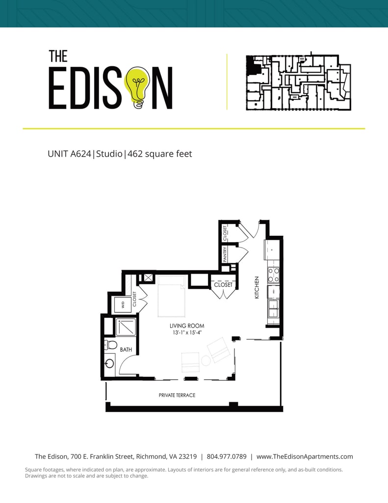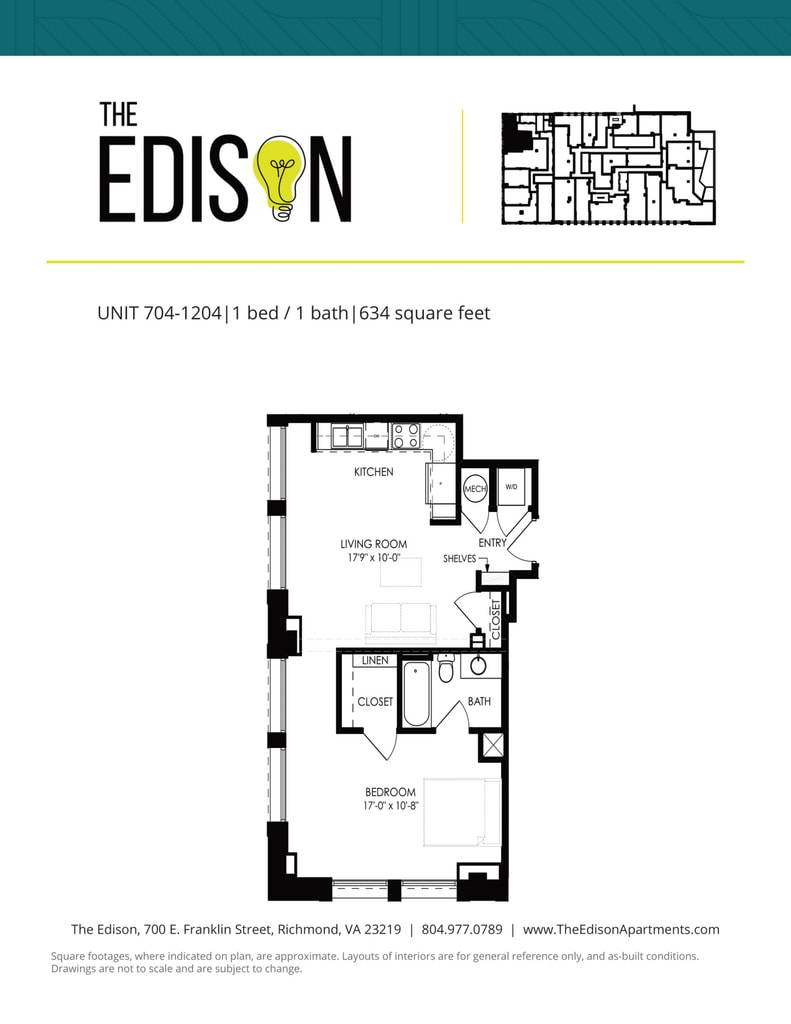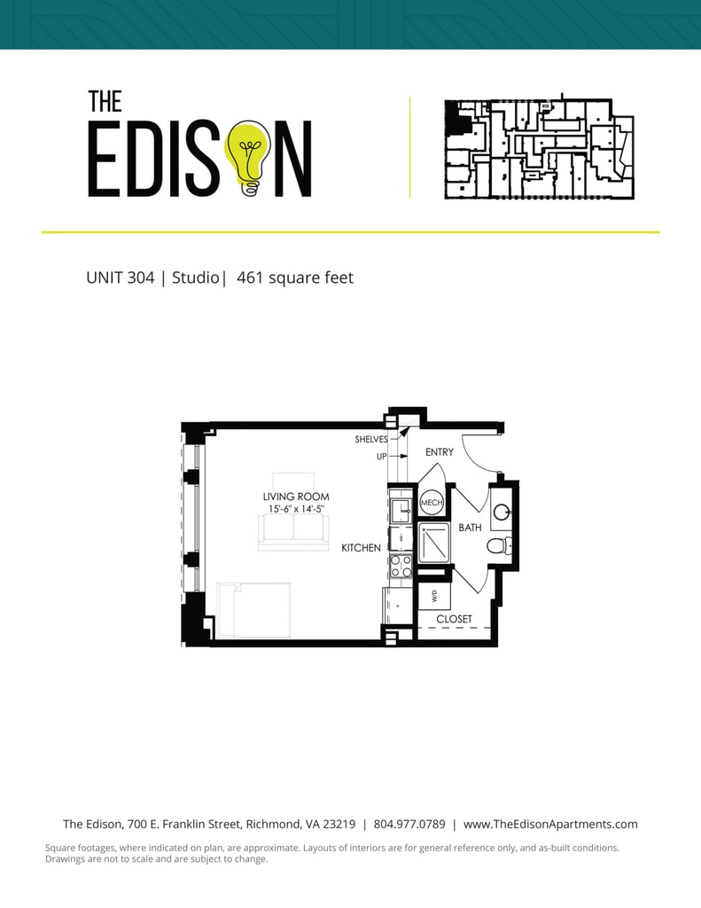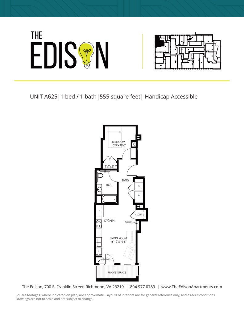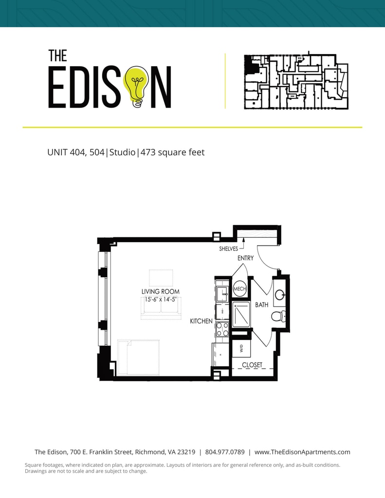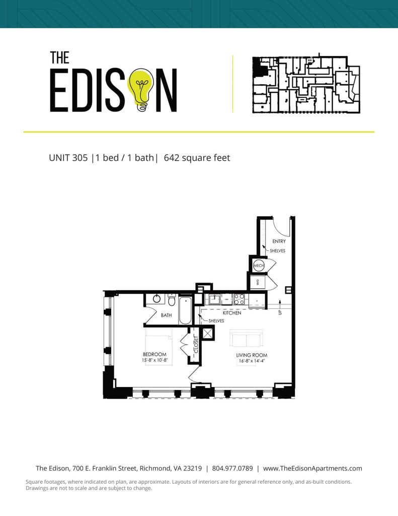 Bienvenido a The Edison Apartments, ubicado en el centro de Richmond, VA. Construido en 1919 como sede de VEPCO (ahora Dominion Energy), este elegante e histórico edificio alto se ha transformado exquisitamente en 174 apartamentos contemporáneos y únicos. Ha sido renombrado en The Edison para reflejar su historia y encanto. Ubicado en el centro del distrito financiero/de negocios de Richmond, los lugares de interés cercanos de The Edison incluyen el VCU School of Medicine (MCV), State Capitol Building, The Carpenter Center, Center Stage, The National y muchos más. El acceso a las autopistas I-95, I-64 y Downtown Expressway, junto con tiendas, restaurantes, lugares de entretenimiento, actividades al aire libre, transporte público y paseos están a minutos de tu nuevo apartamento.