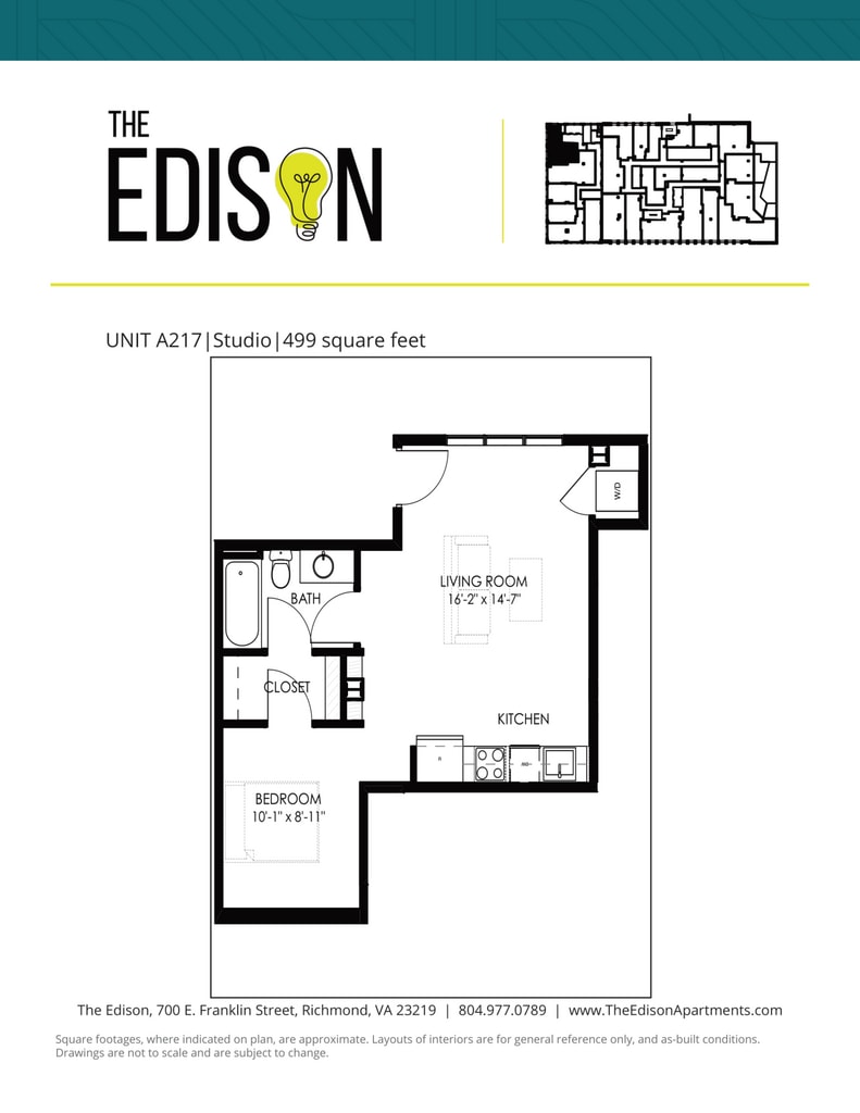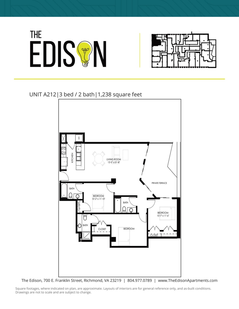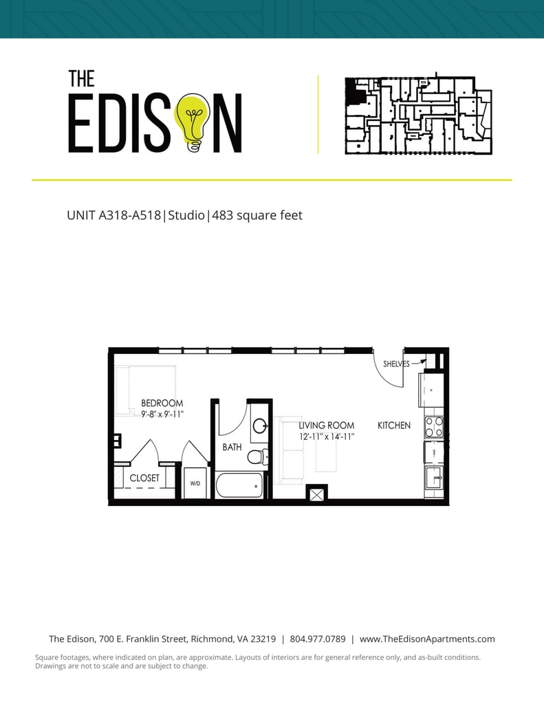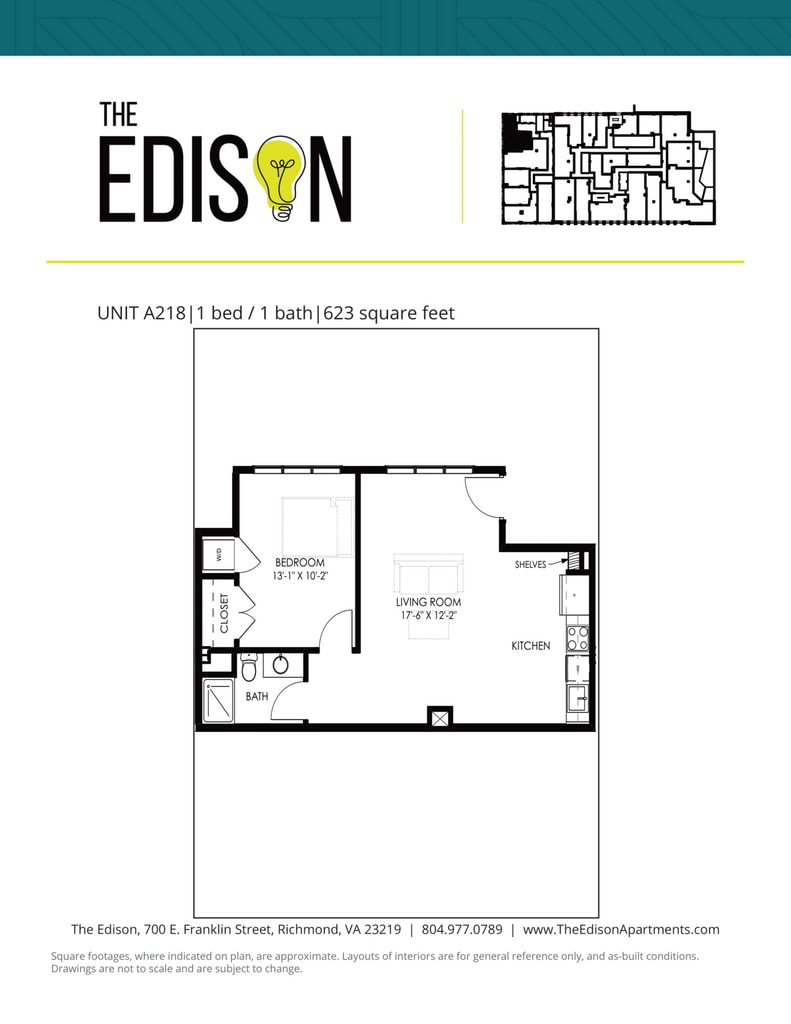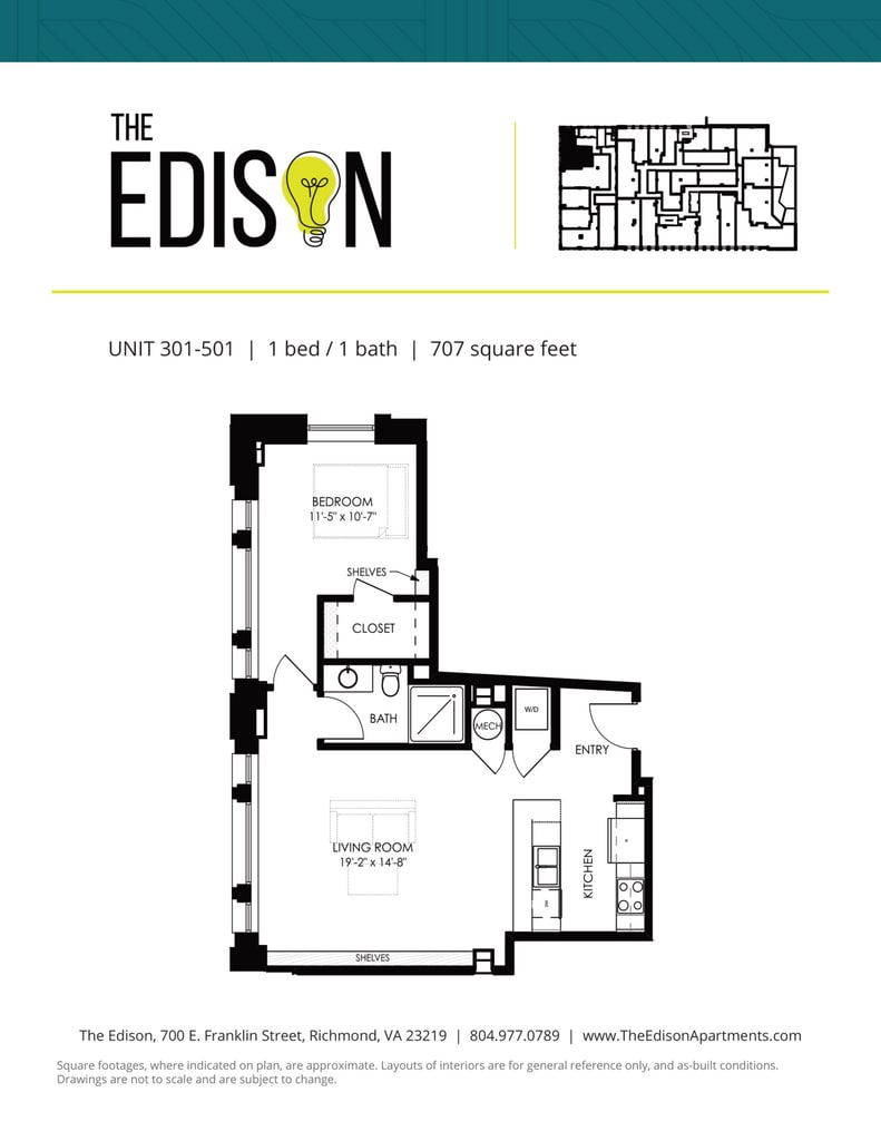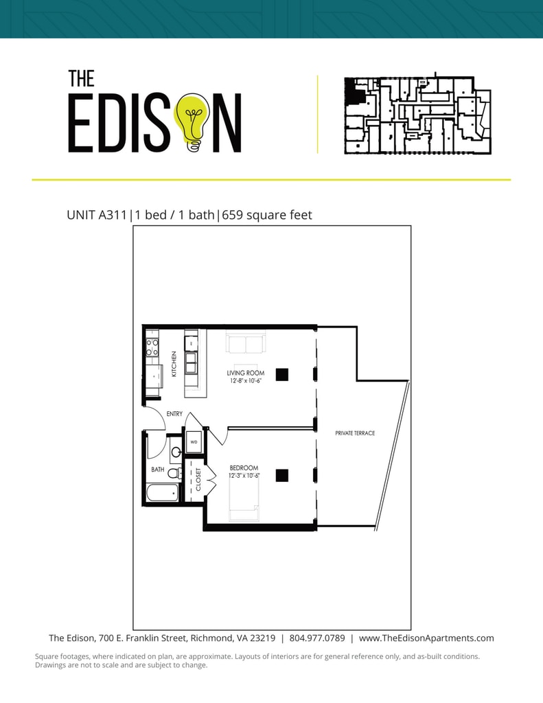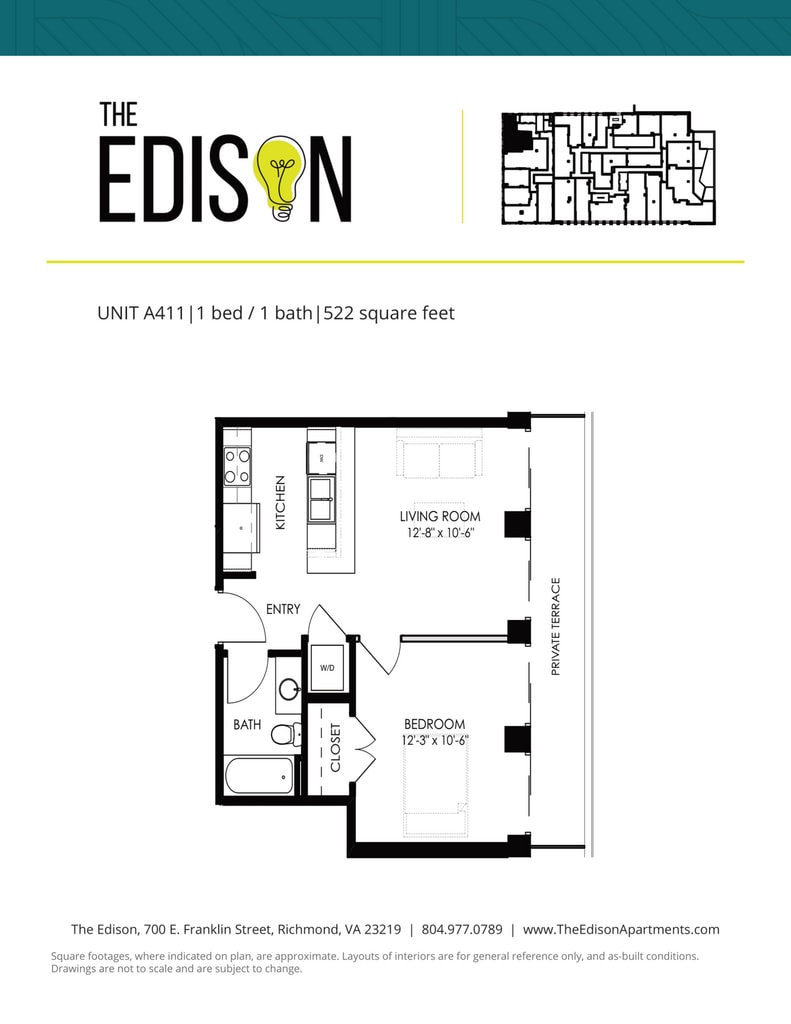 Bienvenido a The Edison Apartments, ubicado en el centro de Richmond, VA. Construido en 1919 como sede de VEPCO (ahora Dominion Energy), este elegante e histórico edificio alto se ha transformado exquisitamente en 174 apartamentos contemporáneos y únicos. Ha sido renombrado en The Edison para reflejar su historia y encanto. Ubicado en el centro del distrito financiero/de negocios de Richmond, los lugares de interés cercanos de The Edison incluyen el VCU School of Medicine (MCV), State Capitol Building, The Carpenter Center, Center Stage, The National y muchos más. El acceso a las autopistas I-95, I-64 y Downtown Expressway, junto con tiendas, restaurantes, lugares de entretenimiento, actividades al aire libre, transporte público y paseos están a minutos de tu nuevo apartamento.