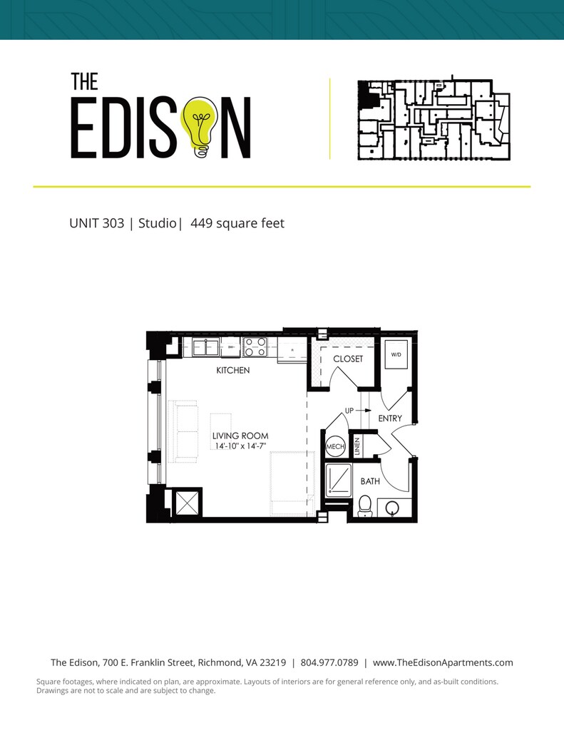 The Edison Apartments ofrece apartamentos de Estudio a 3 Dormitorios desde $1,449 con 360–1,281 pies cuadrados. Aquí está el precio actual y la disponibilidad: