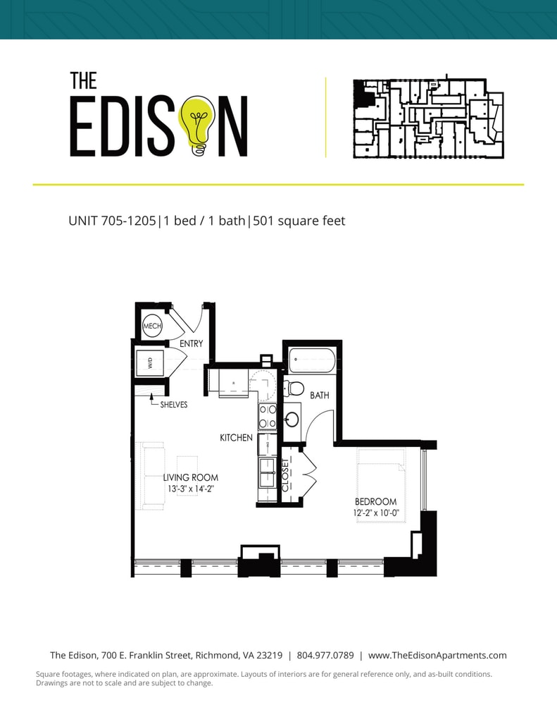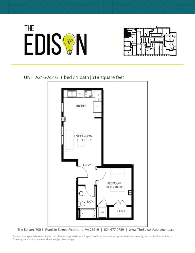 The Edison Apartments se encuentra en el Barrio Capitol District y el código postal 23219 de Richmond, VA. Esta comunidad está gestionada profesionalmente por Genesis Properties