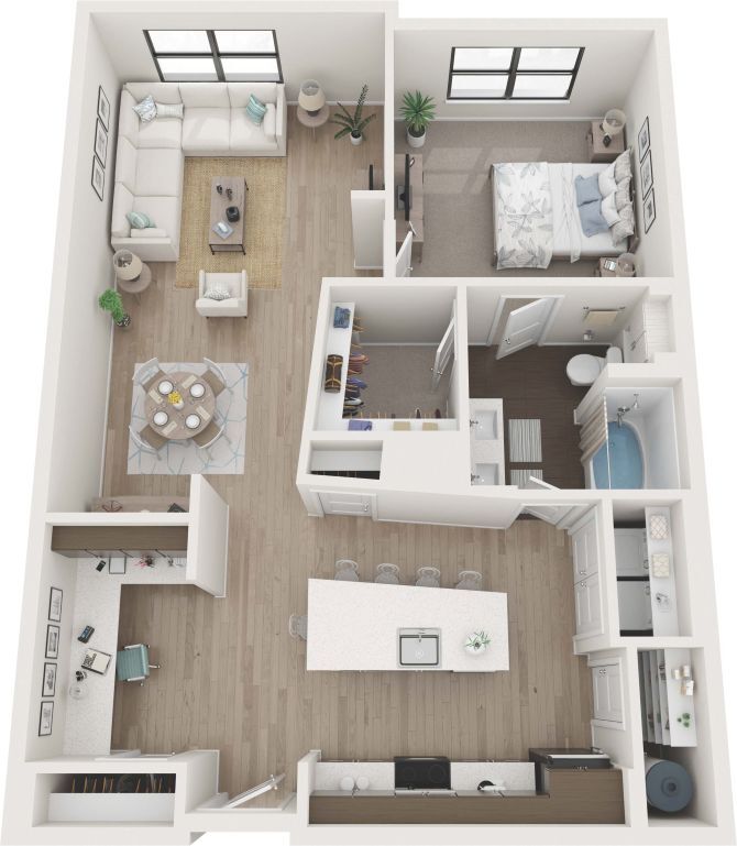 1 Dormitorio, 1 Baño, 864 pies²Disponible AhoraGalería del Modelo