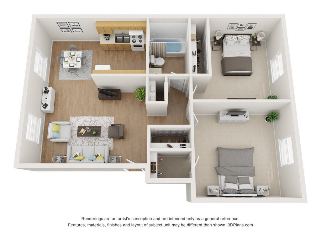 2 Dormitorios, 1 Baño, 760 pies²Disponible AhoraGalería del Modelo