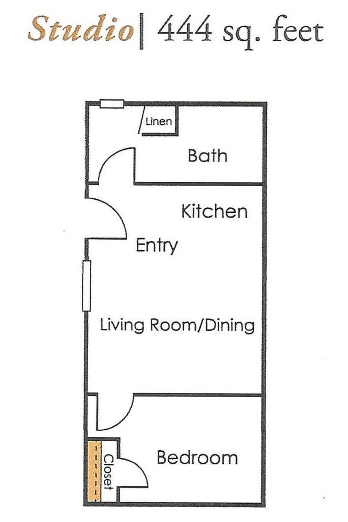 Studio - Plano 1 Unidad de apartamento: 13-121Modelo de apartamento: StudioDesde $1,340Estudio, 1 Baño, 444 sq ftDisponible January 12, 20261 Dormitorio