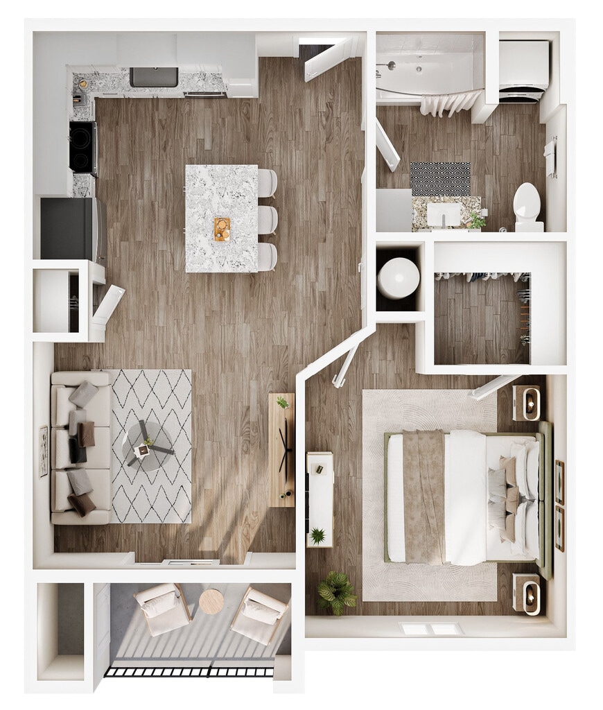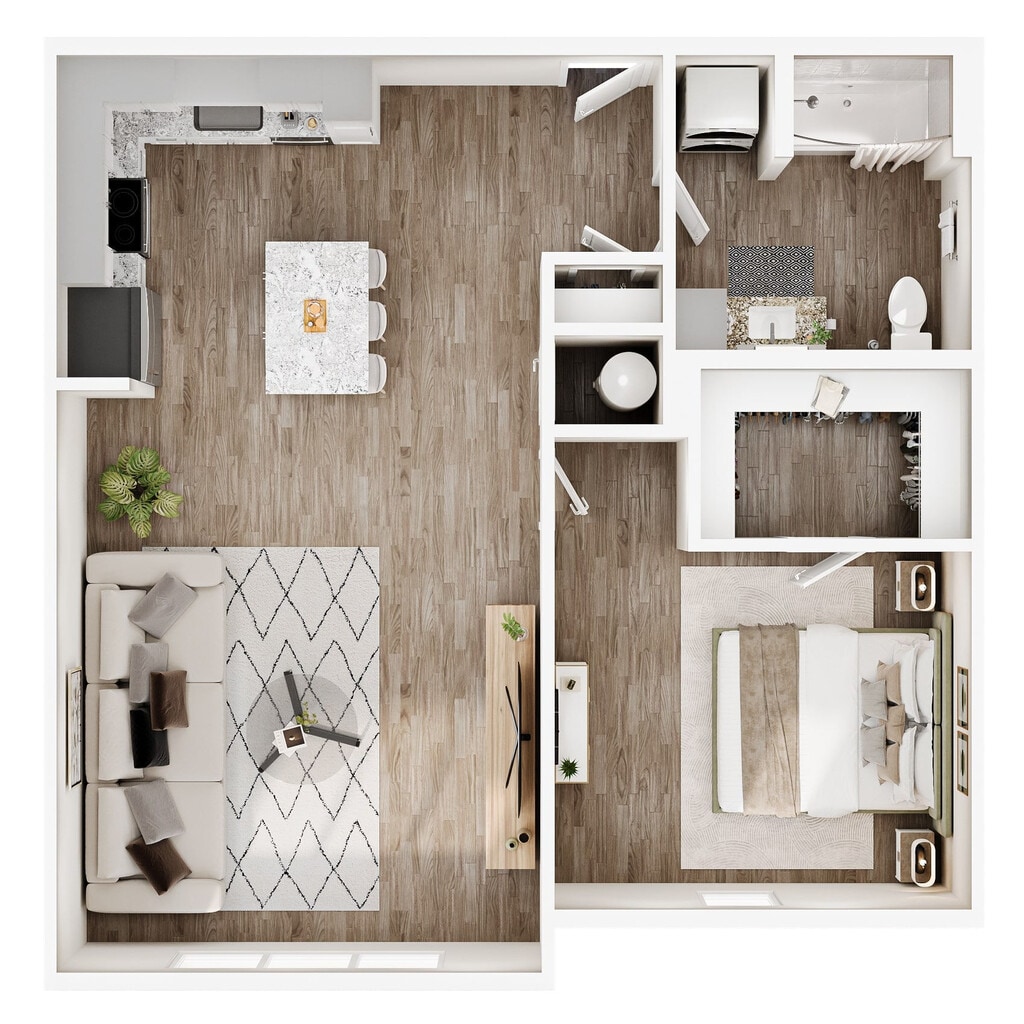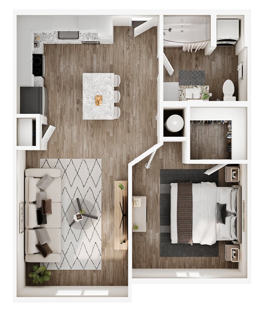 1 Dormitorio, 1 Baño, 722 pies²Disponible AhoraGalería del Modelo
