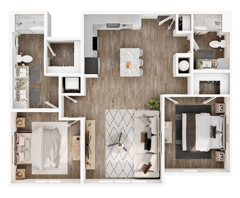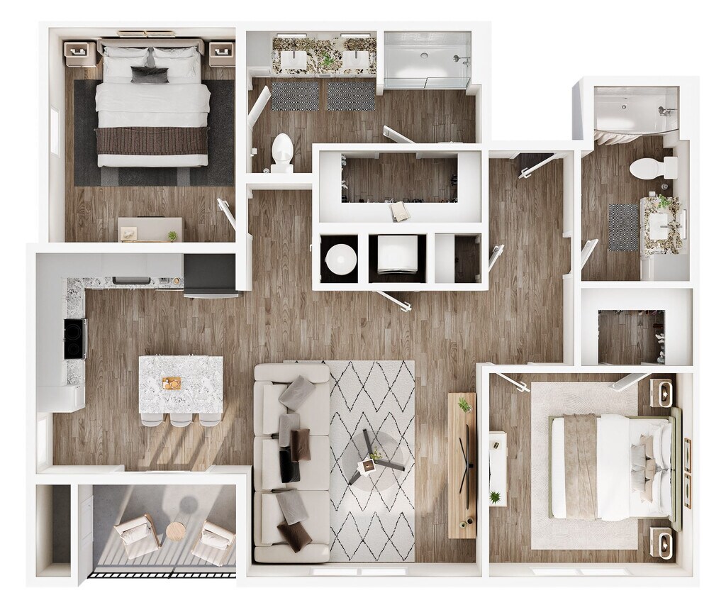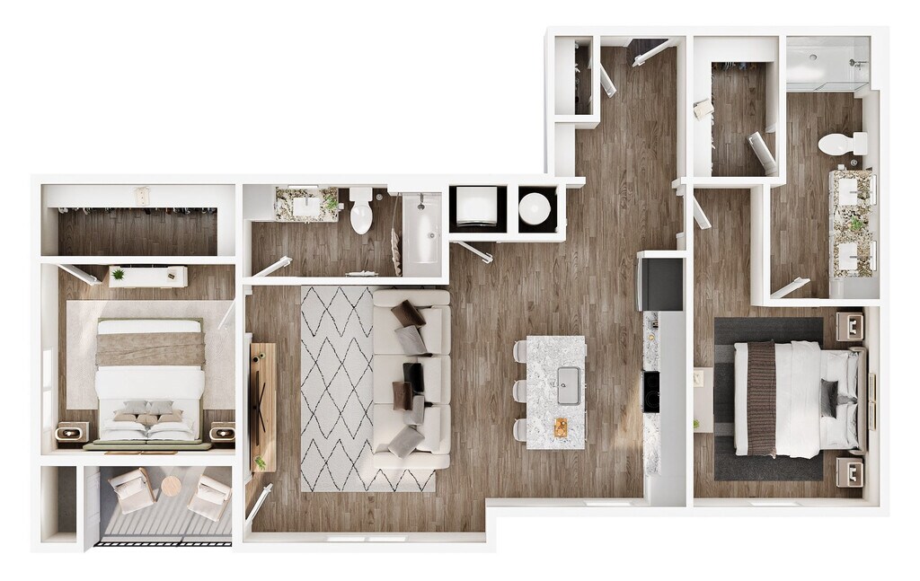 Modelo de apartamento: Tesla IIDesde $2,1501 Dormitorio, 1 Baño, 722 sq ftDisponible Ahora![]()
