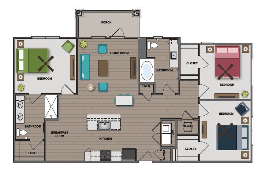 Modelo de apartamento: FullerDesde $1,3951 Dormitorio, 1 Baño, 913 sq ftDisponible Ahora![]()