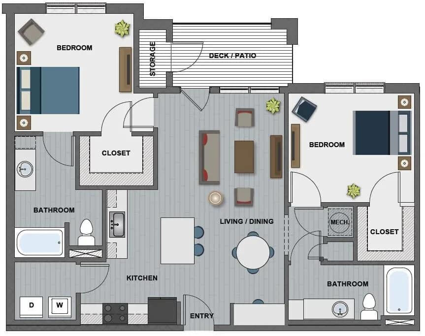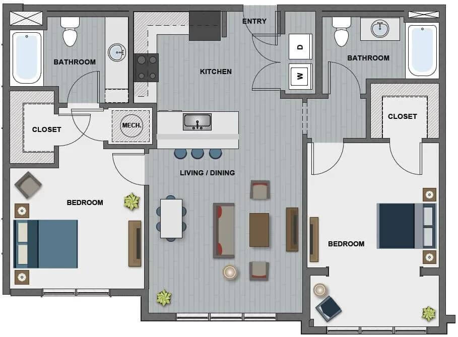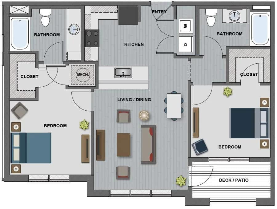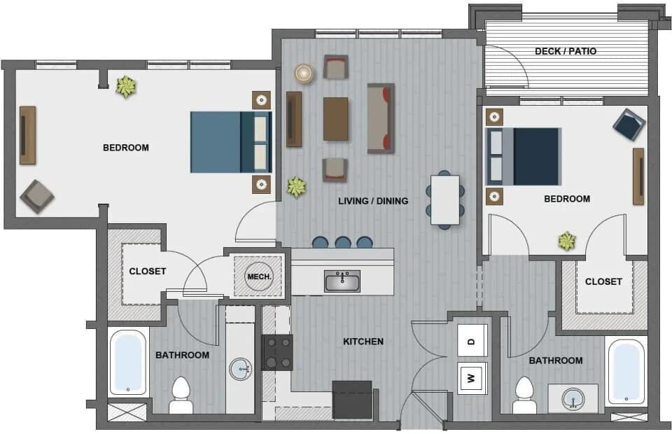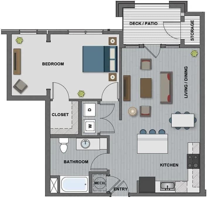 1 Dormitorio, 1 Baño, 737 pies²Disponible AhoraGalería del Modelo