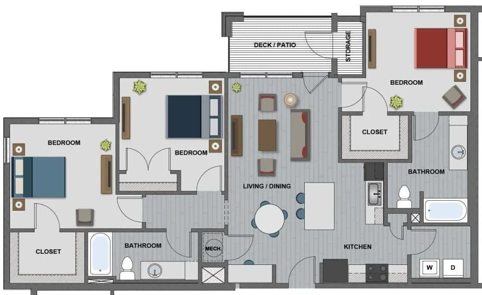 Modelo de apartamento: BellDesde $1,5061 Dormitorio, 1 Baño, 737 sq ftDisponible Ahora![]()