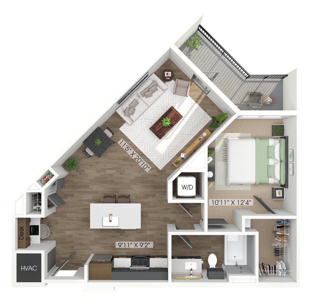 1 Dormitorio, 1 Baño, 693 pies²Disponible AhoraGalería del Modelo