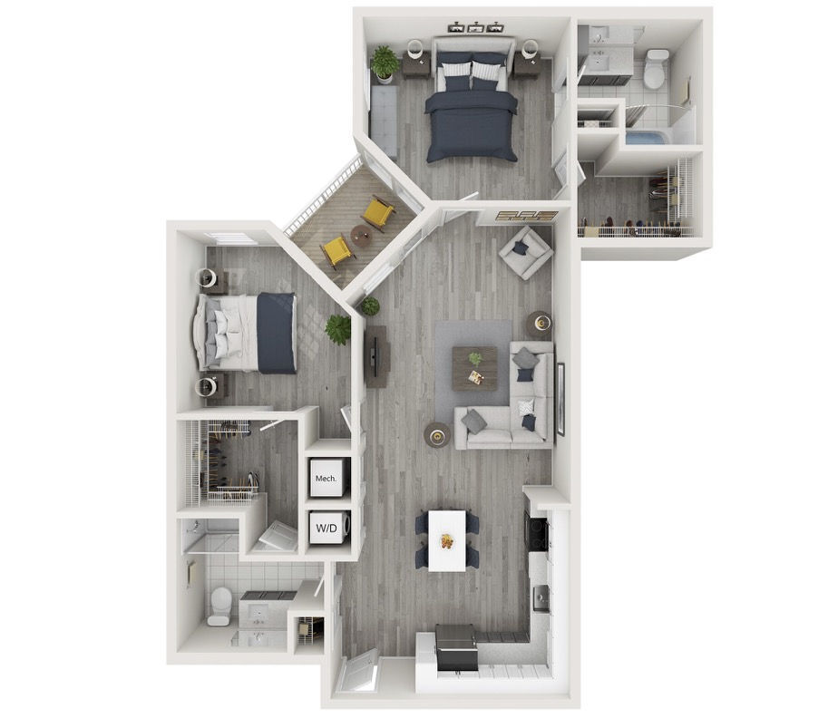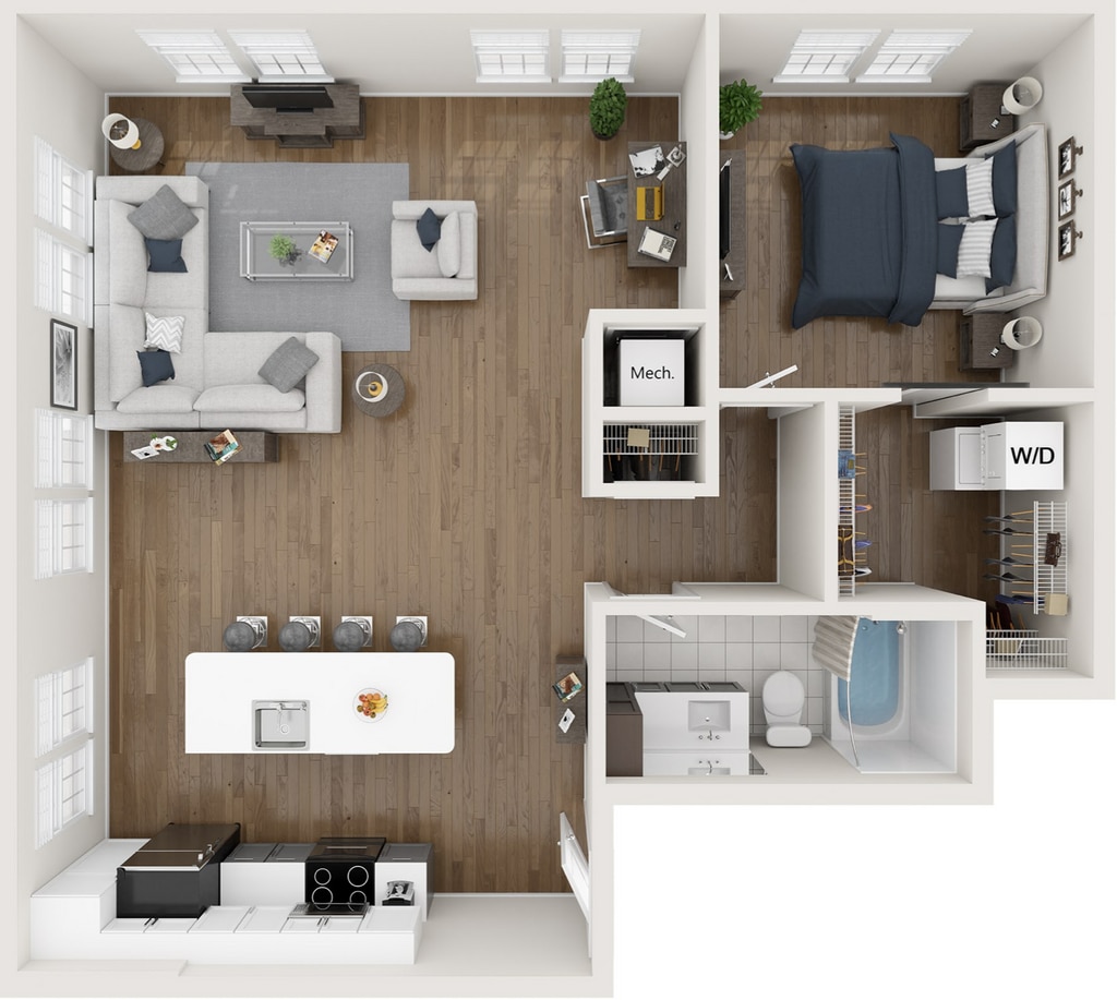 1 Dormitorio, 1 Baño, 686-700 pies²Disponible AhoraGalería del Modelo