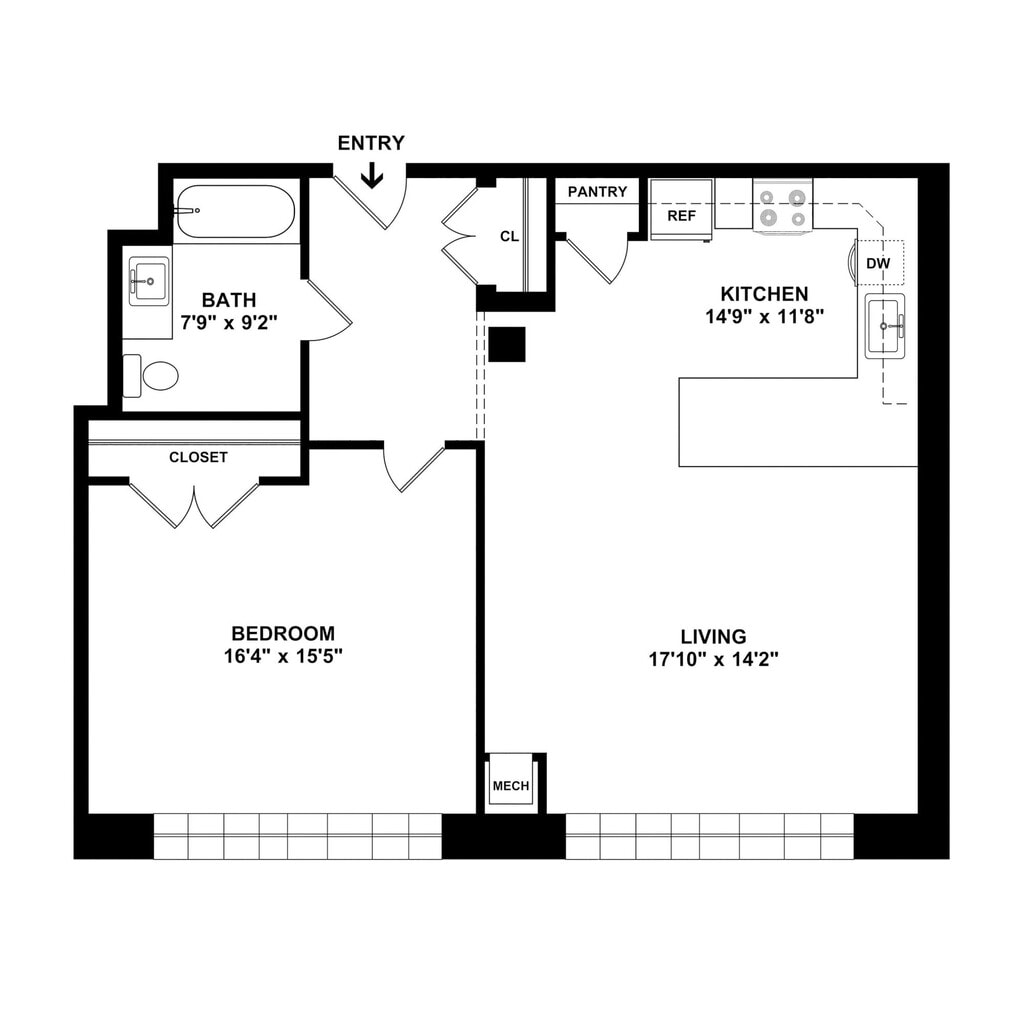 1 Dormitorio, 1 Baño, 698-784 pies²Galería del Modelo