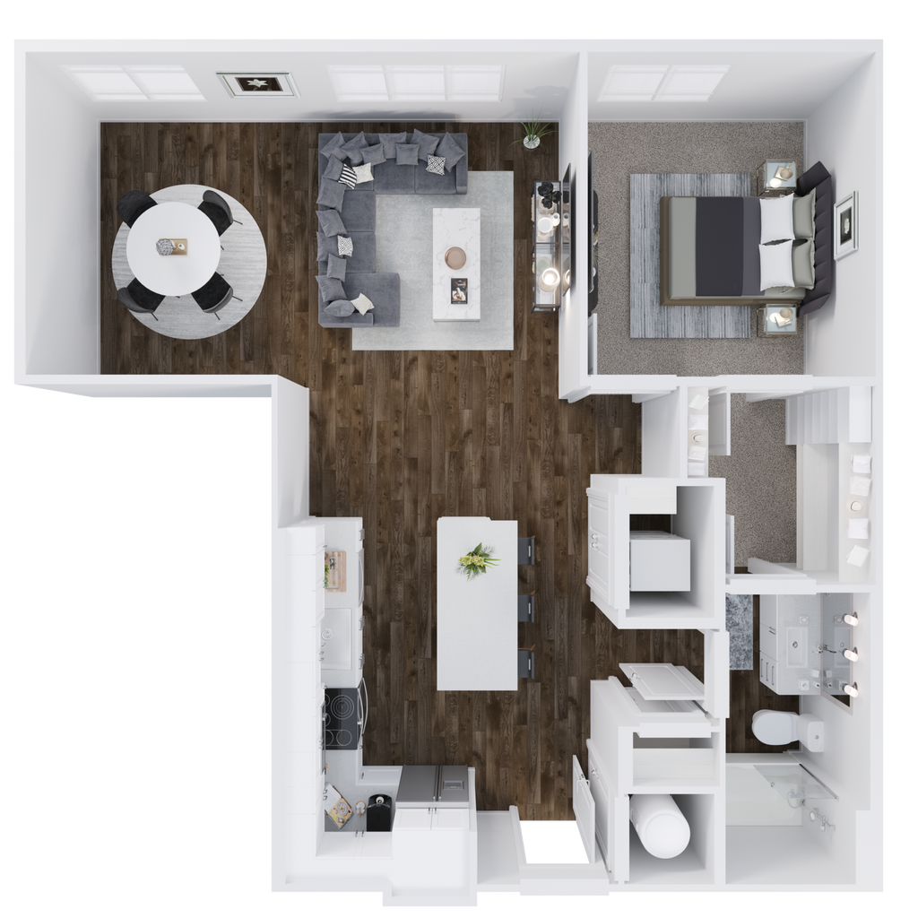 Modelo de apartamento: S1Desde $1,322Estudio, 1 Baño, 533 sq ftDisponible Ahora![]()