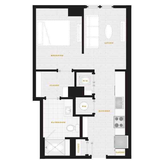 Estudio, 1 Baño, 595 pies²Disponible AhoraGalería del Modelo