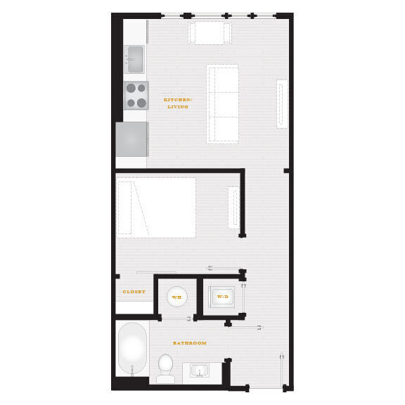 Estudio, 1 Baño, 573 pies²Disponible AhoraGalería del Modelo
