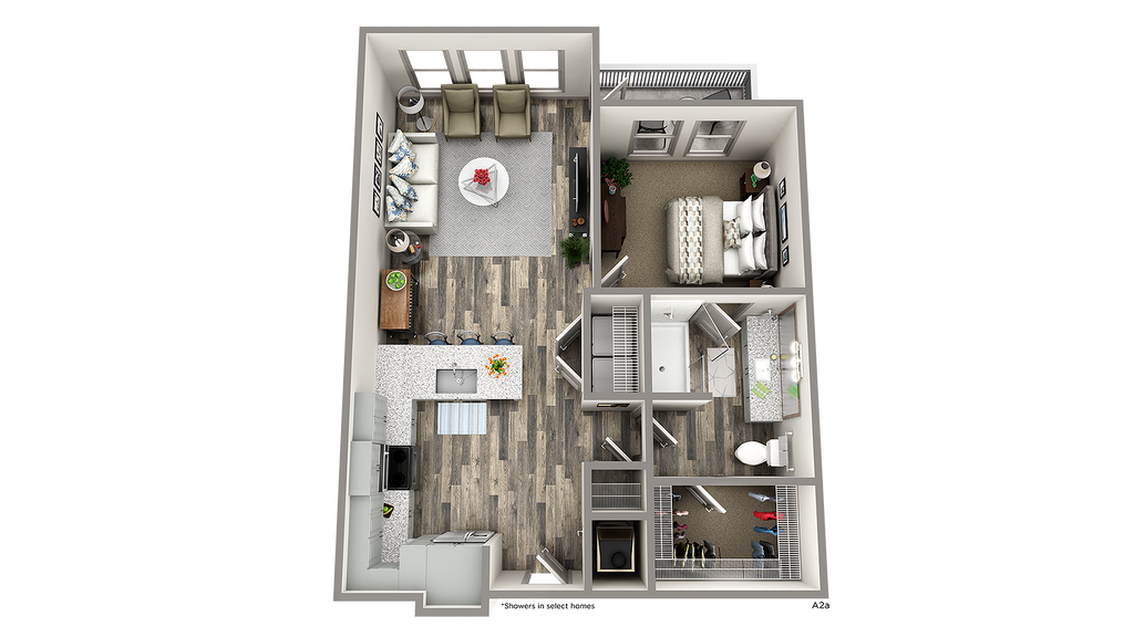 Modelo de apartamento: A2Desde $1,4621 Dormitorio, 1 Baño, 849 sq ftDisponible Ahora![]()