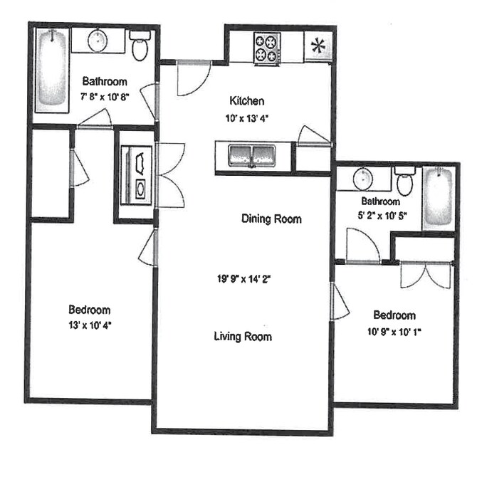 2X2 C - Plano 2 Unidad de apartamento: B219Modelo de apartamento: 2X2 C$1,6992 Dormitorios, 2 Baños, 976 sq ftDisponible Ahora2X2 A