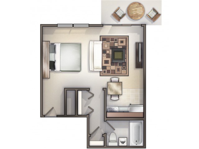 Modelo de apartamento: StudioEstudio, 1 Baño, 388 sq ftNo Disponible![]()