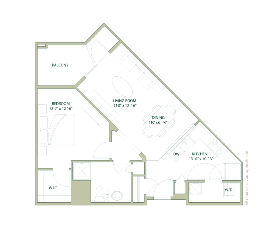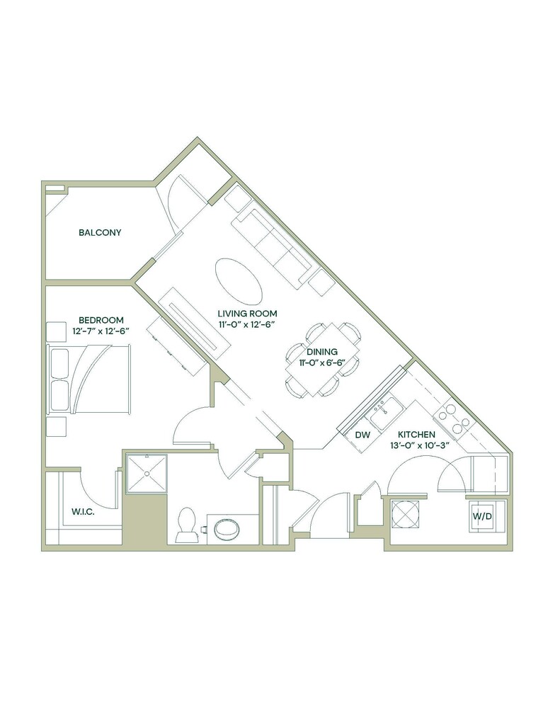 1 Dormitorio, 1 Baño, 729 pies²Galería del Modelo