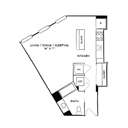 Estudio, 1 Baño, 561 pies²Disponible AhoraGalería del Modelo