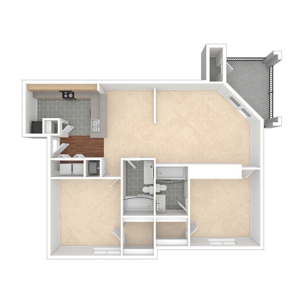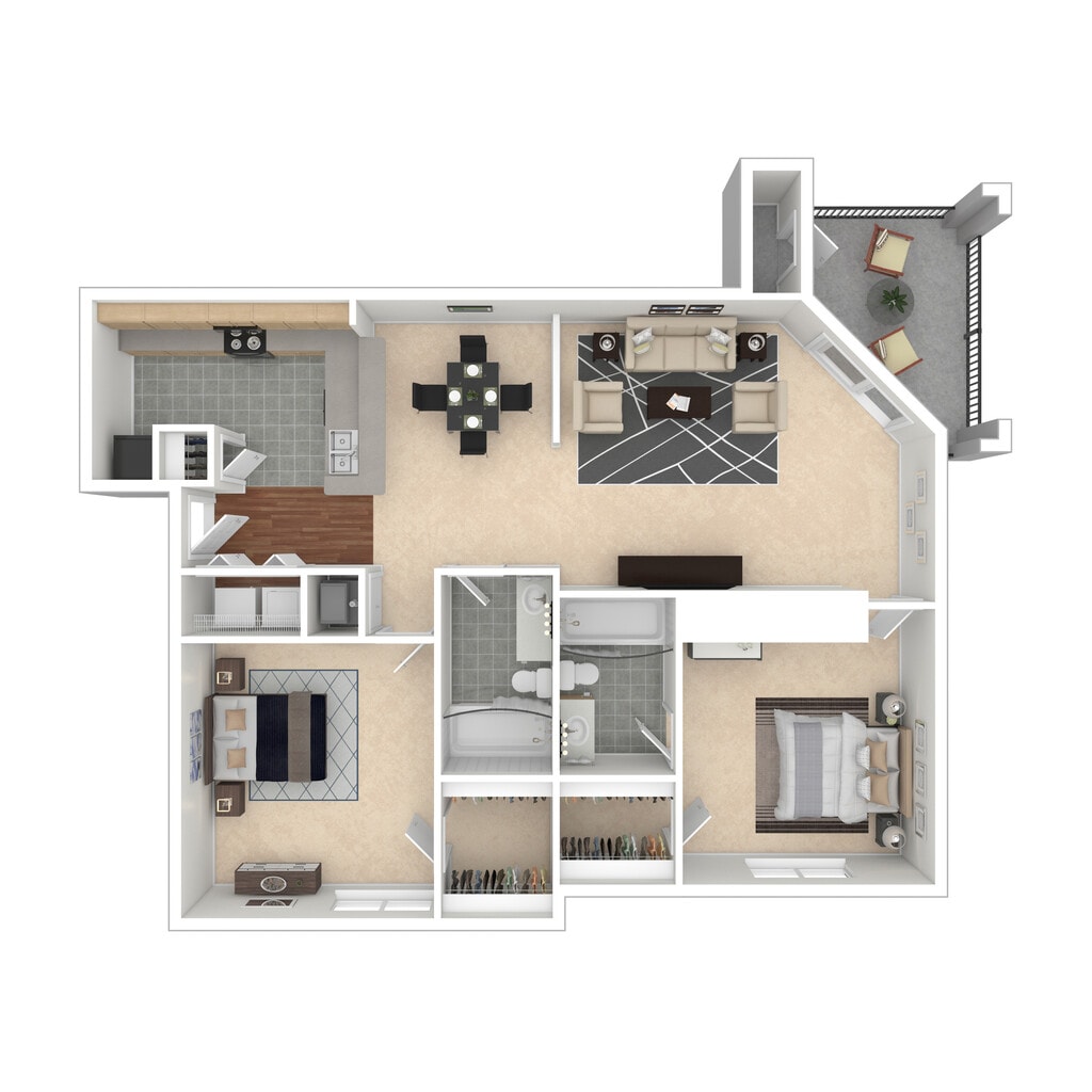 Modelo de apartamento: ChestnutDesde $2,3442 Dormitorios, 2 Baños, 1066-1119 sq ftDisponible Ahora![]()