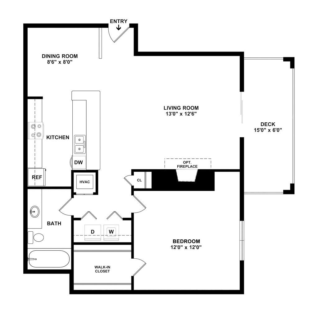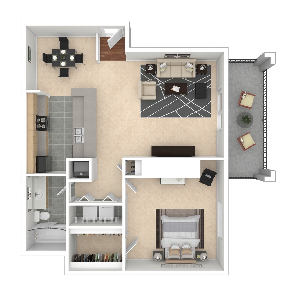 1 Dormitorio, 1 Baño, 603-826 pies²Disponible AhoraGalería del Modelo