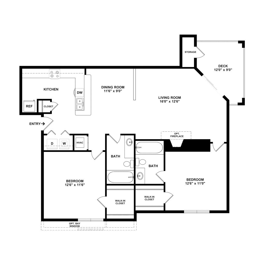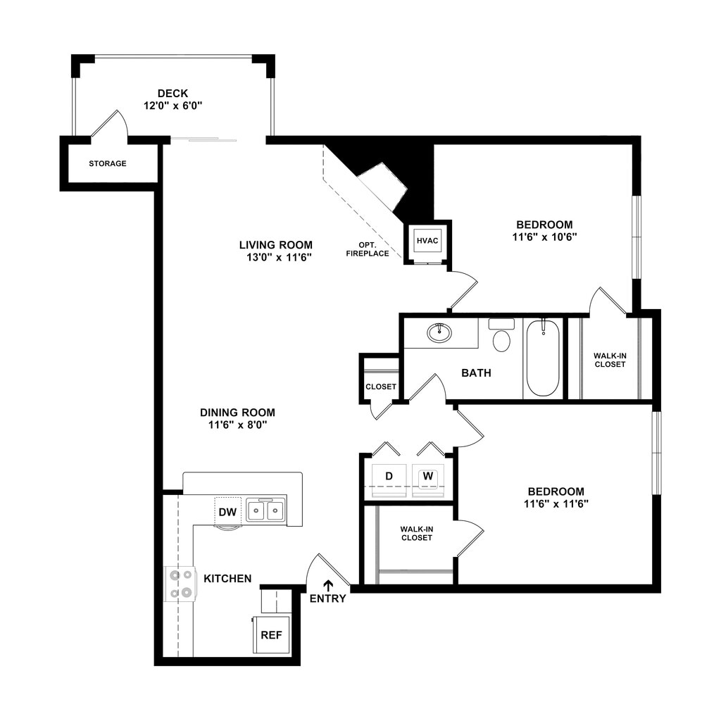 Modelo de apartamento: ButternutDesde $2,1222 Dormitorios, 1 Baño, 922-945 sq ftDisponible Ahora![]()