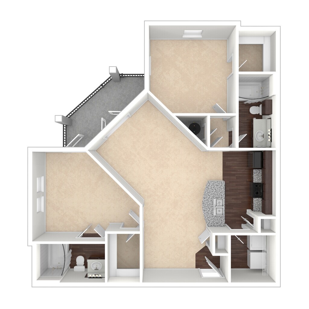 Modelo de apartamento: B1 - Balcony2 Dormitorios, 2 Baños, 1134 sq ftDisponible Ahora![]()