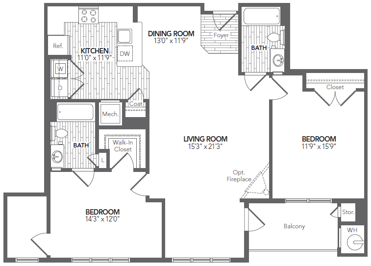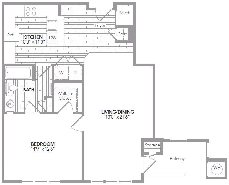 1 Dormitorio, 1 Baño, 1044 pies²Disponible AhoraEl más grandeEsta opción tiene las unidades más grandes para este modeloGalería del Modelo