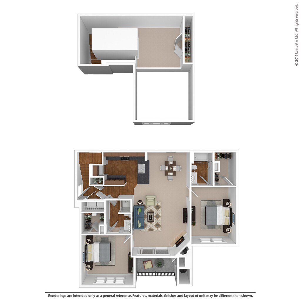 Modelo de apartamento: A-LOFT1 Dormitorio, 1 Baño, 1044 sq ftDisponible Ahora![]()