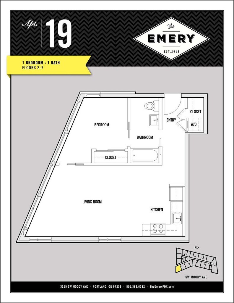 The Emery se encuentra en el Barrio South Waterfront y el código postal 97239 de Portland, OR. Esta comunidad está gestionada profesionalmente por Norris & Stevens, Inc.